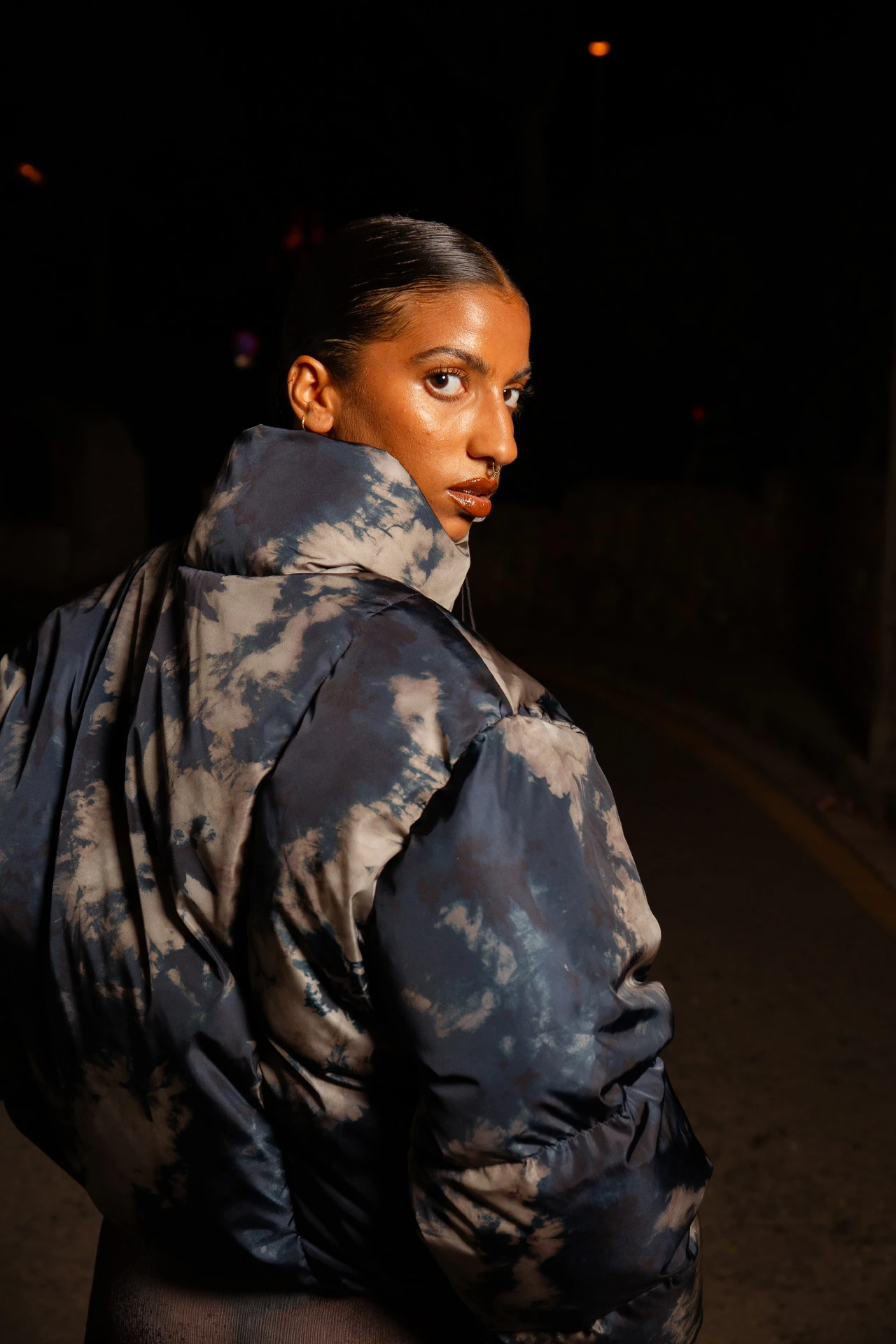 Aurea is a classic short puffer jacket, formed of multiple panels of navy blue. She’s got roomy pockets for all your winter hand-warming needs, and adjustable toggles to ruche and tighten the hem as you please.