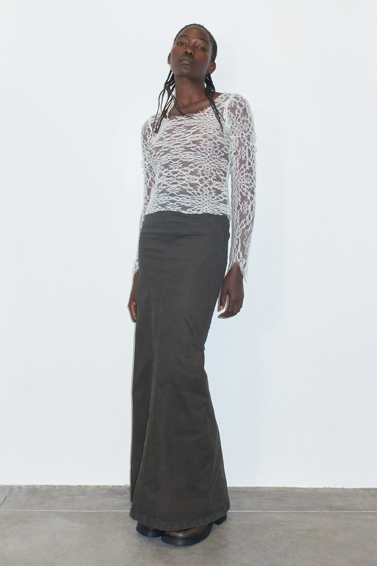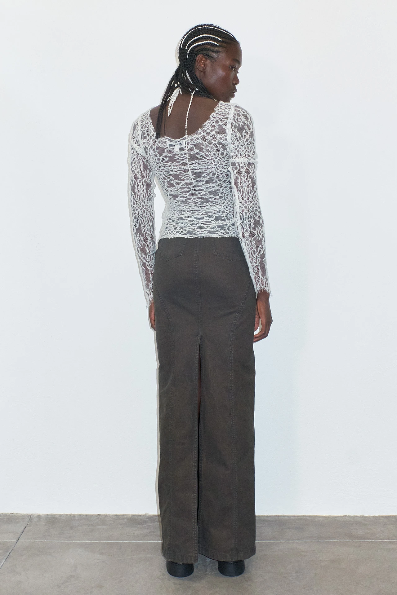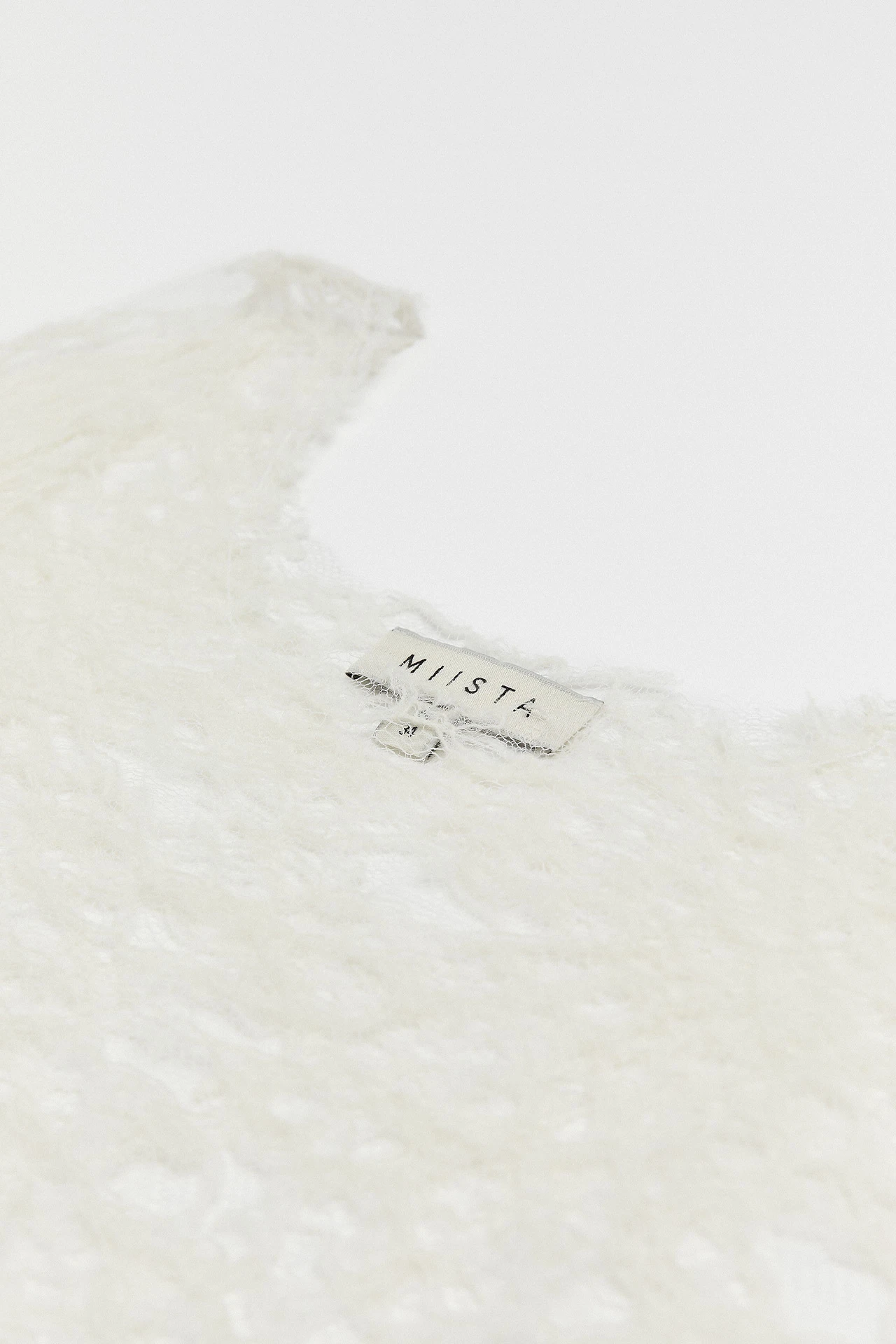 Barbosa is a staple piece with a twist. Ready to be worn with anything, she’s got a scoop-neck and long sleeves, and is formed of textured, punctured ivory viscose.