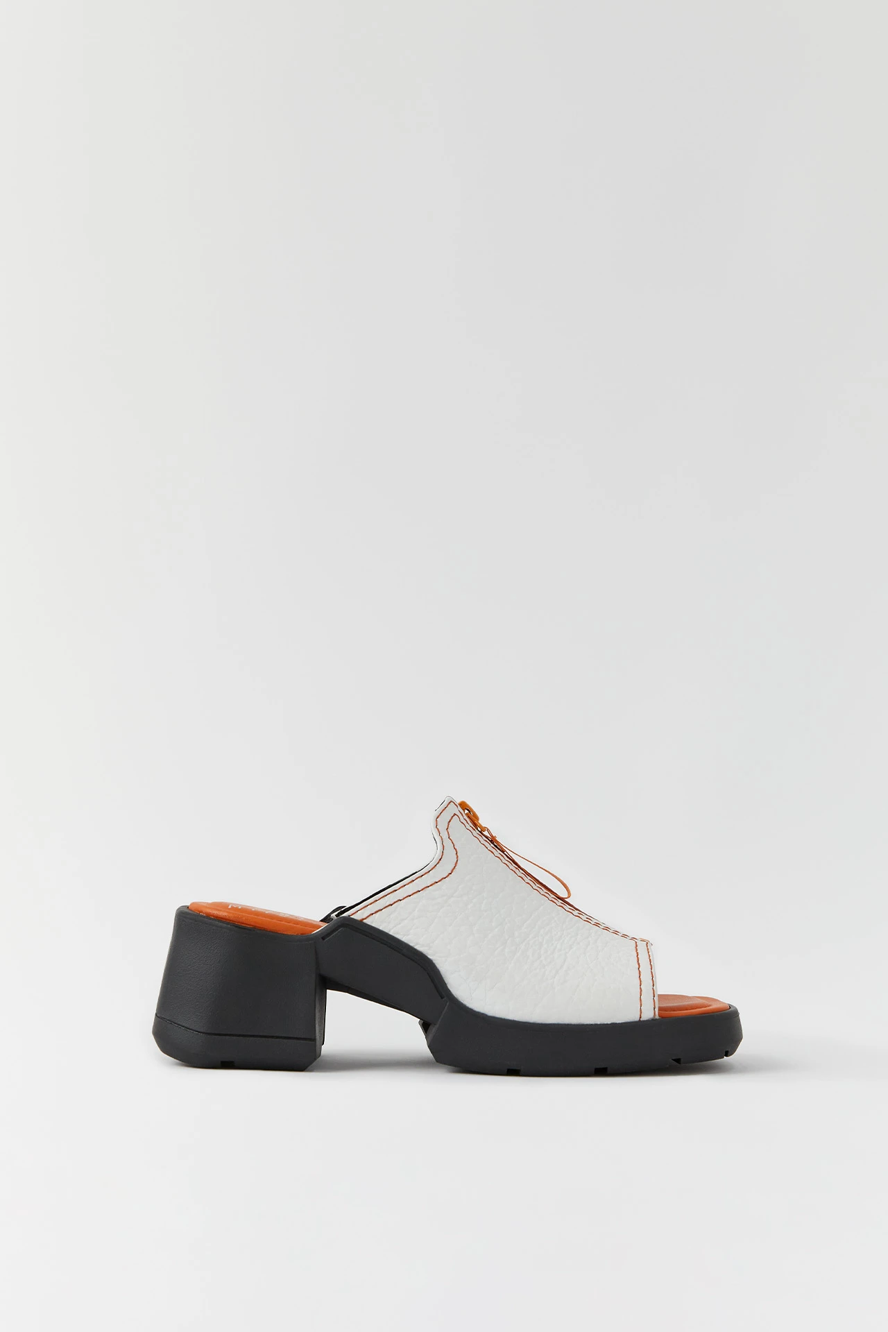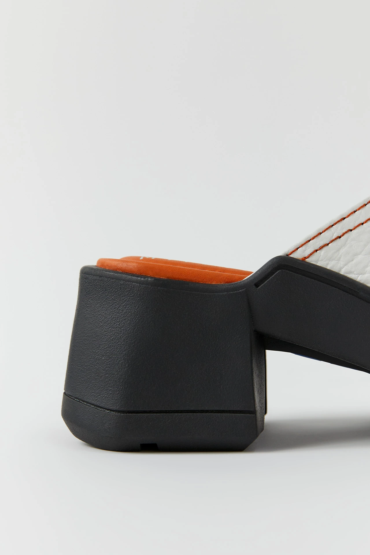 Bertie sits in that glorious realm between sandal and mule. Her white tumbled cow leather upper sports a central rubberised zipper in contrasting orange, complete with a Miista branded 3M reflective zip pull to catch the light as you walk. Her anatomical insole massages the foot, and is covered in super soft orange sheep nappa leather to take that comfortable feel to the next level.
