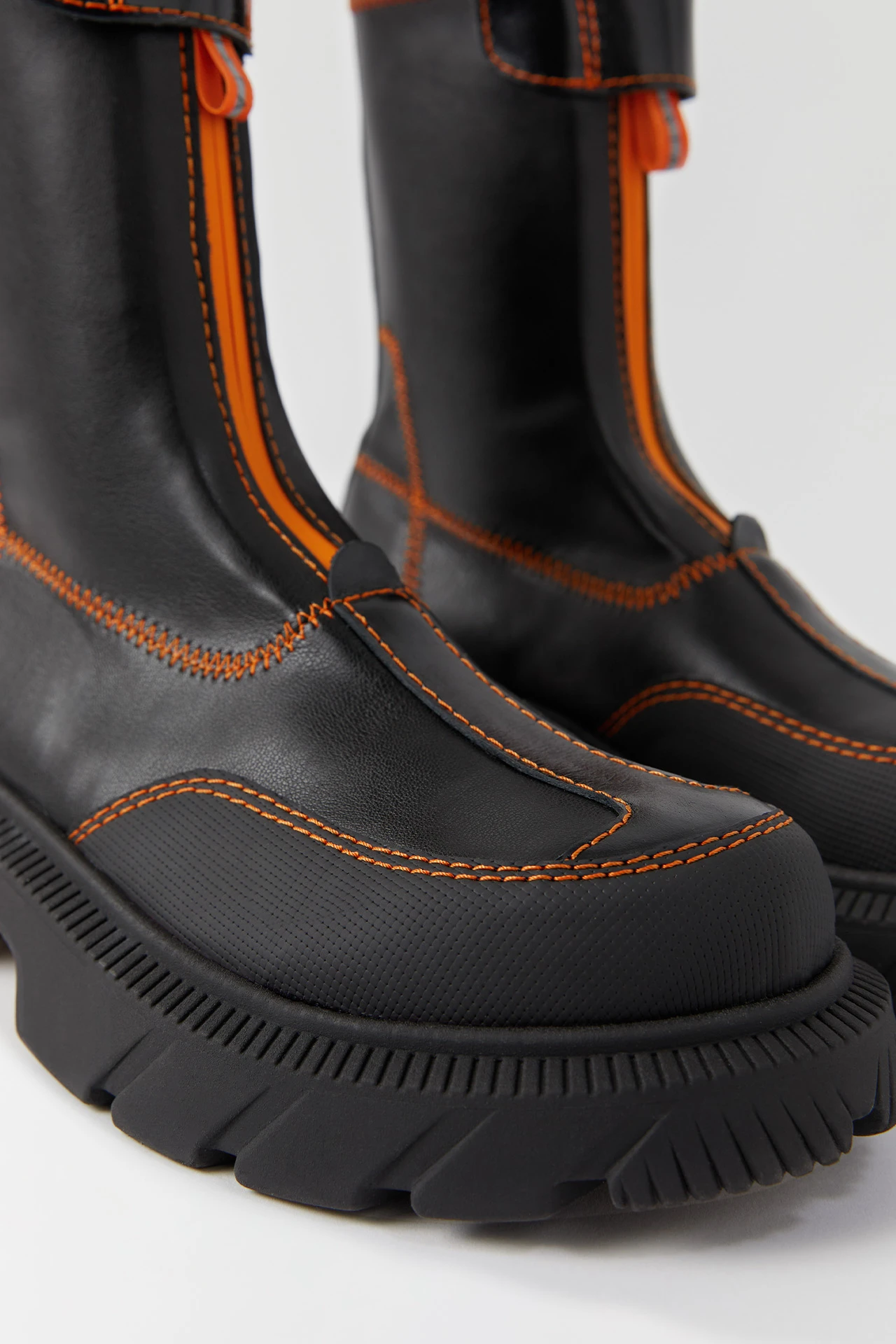 Danica is ready for anything. She’s a black ankle boot featuring a rubberized orange centre zip, velcro strap, textured rubber panels, and contrasting zig-zag orange stitching all over. And to top it all off, she’s got a heavy duty rubber tread sole for supreme comfort through thick and thin.