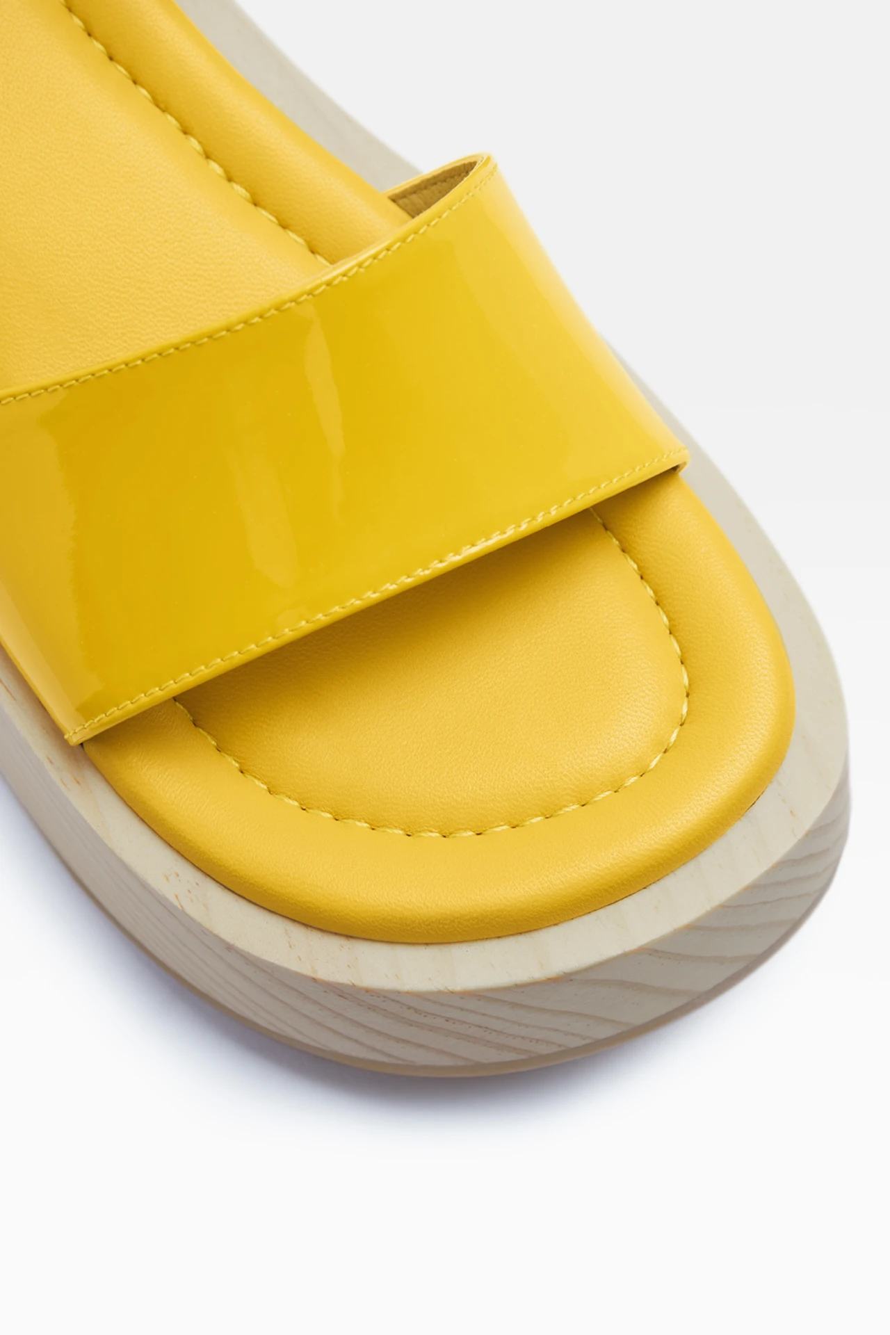 The Deanna features a 5.2cm wooden wedge with a bright yellow leather wide strap and a delicate buckled ankle strap. This style is true to size. We recommend selecting your standard European size.