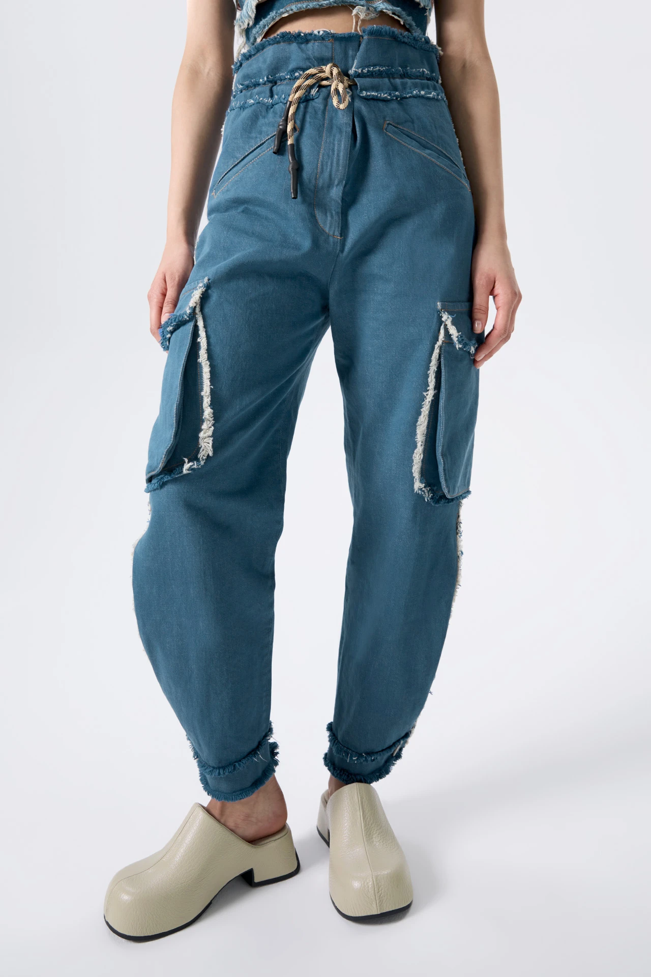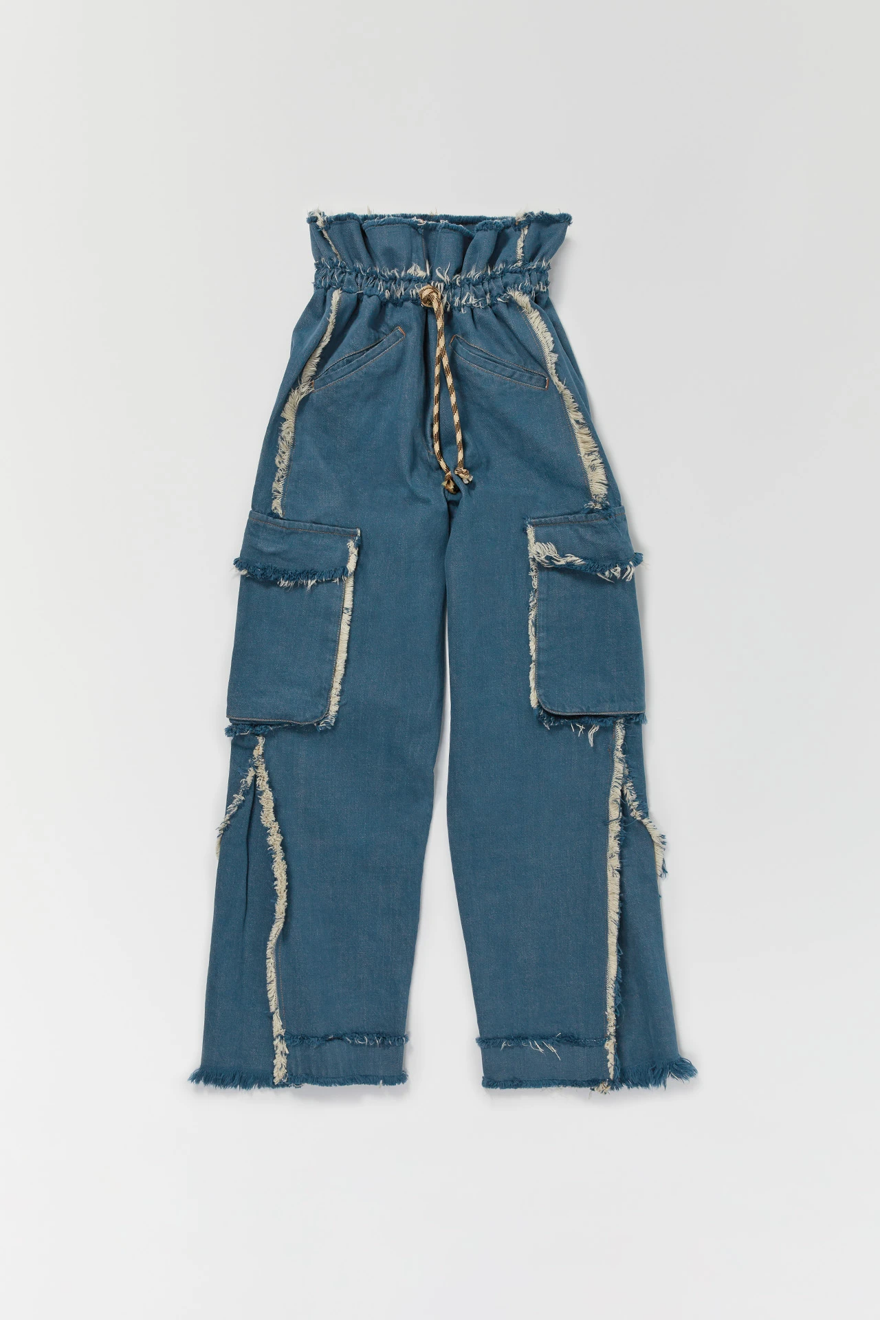 We designed Dolly for all the independent Miista women out there who need their trousers to multitask. Utility and style come together in these oversized cargo pants, complete with large pockets for carrying all your essentials, a comfortable paperbag waist fastened with hiking lace drawstrings and our extreme frayed raw edge seams.