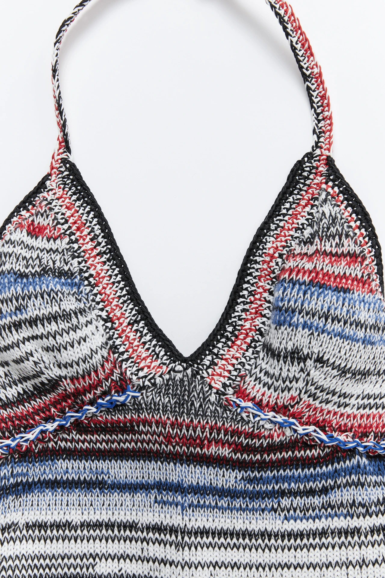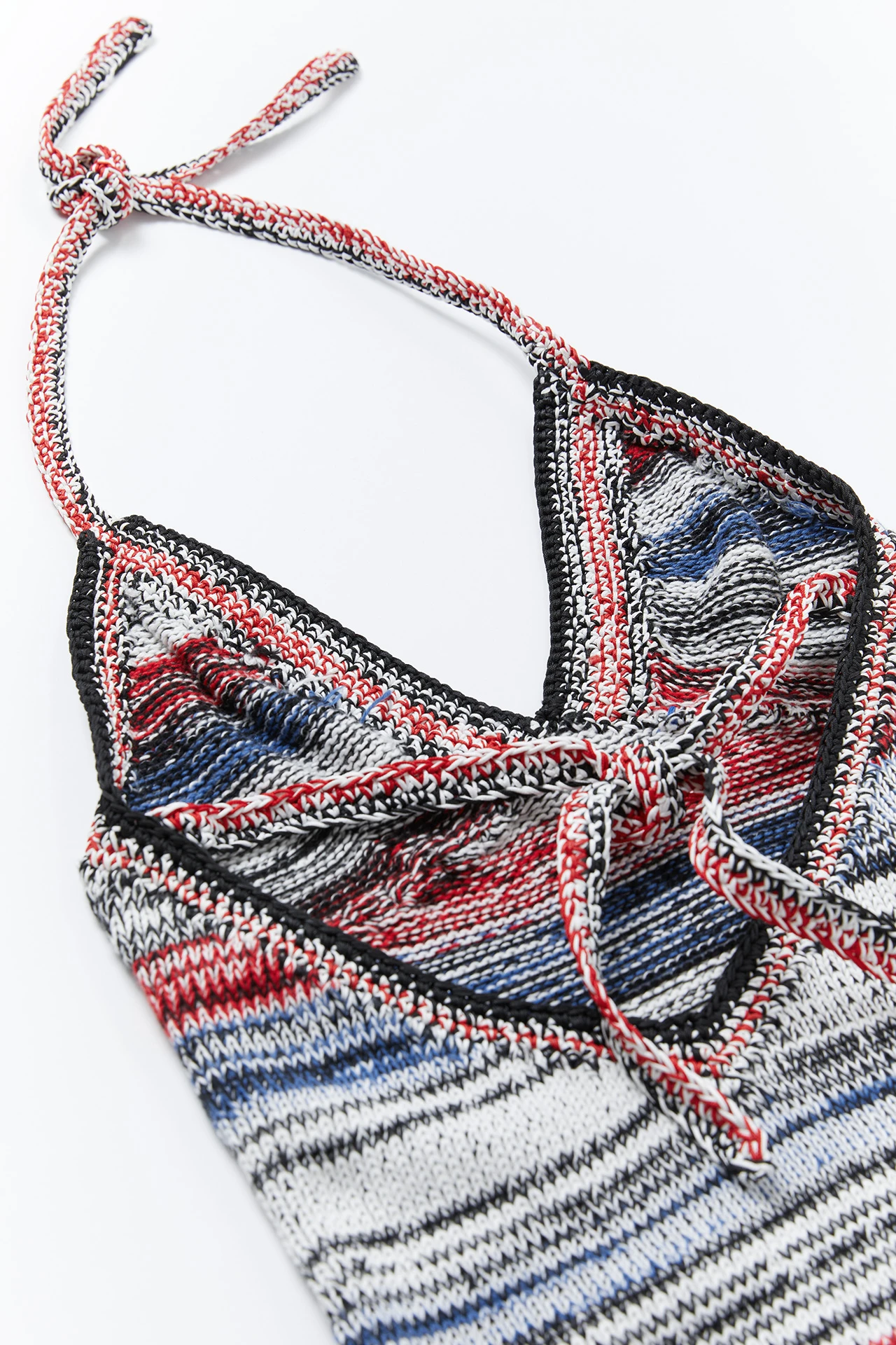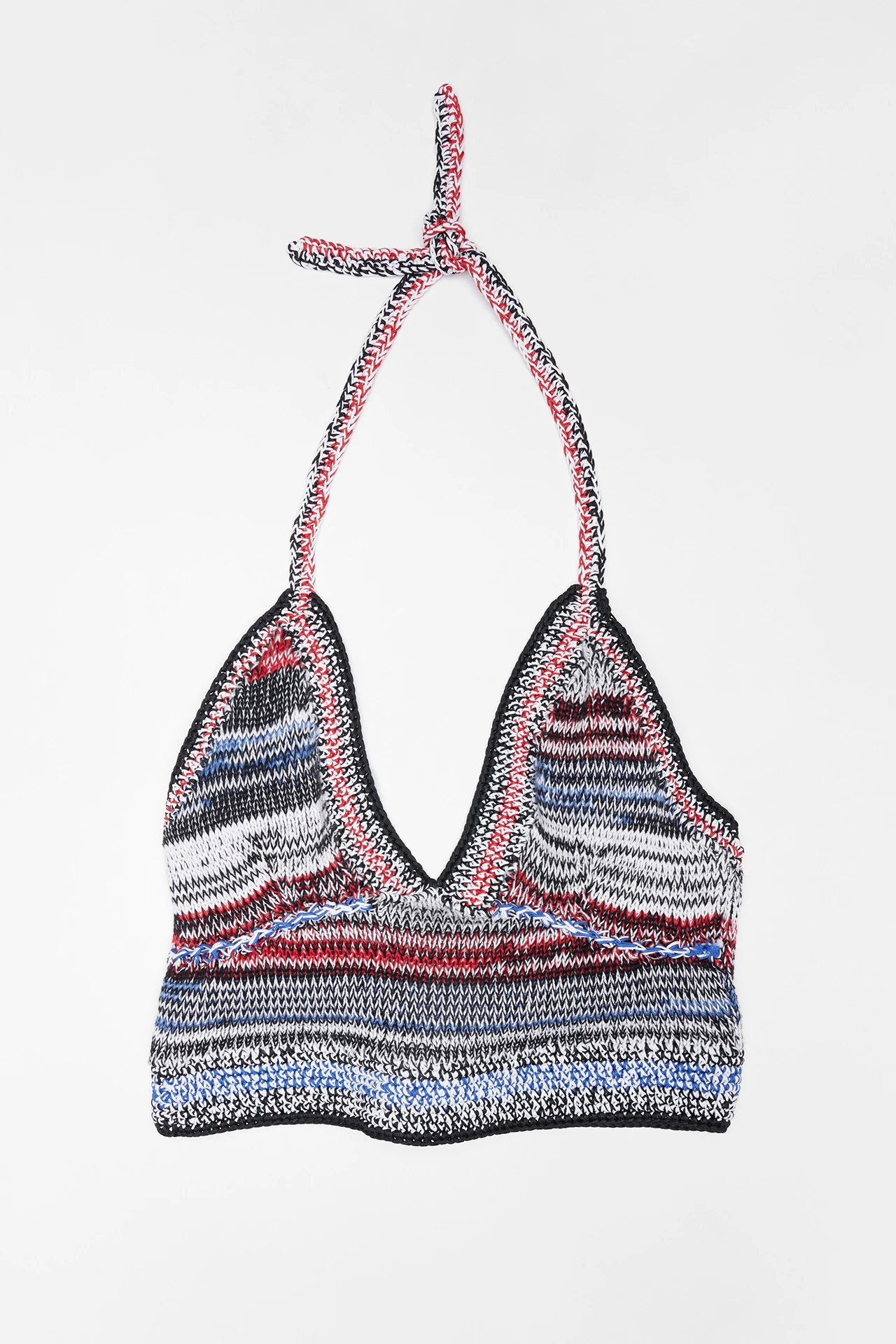 Summer encapsulated, this crop top features five colours in a soft striped knit finished with hand crochet edges to hold it’s shape to your body. Secured with a halter neck crochet tie, Elaine keeps her cool all summer long. This style is true to size. We recommend selecting your standard European size. Designed in London | Handcrafted in Spain