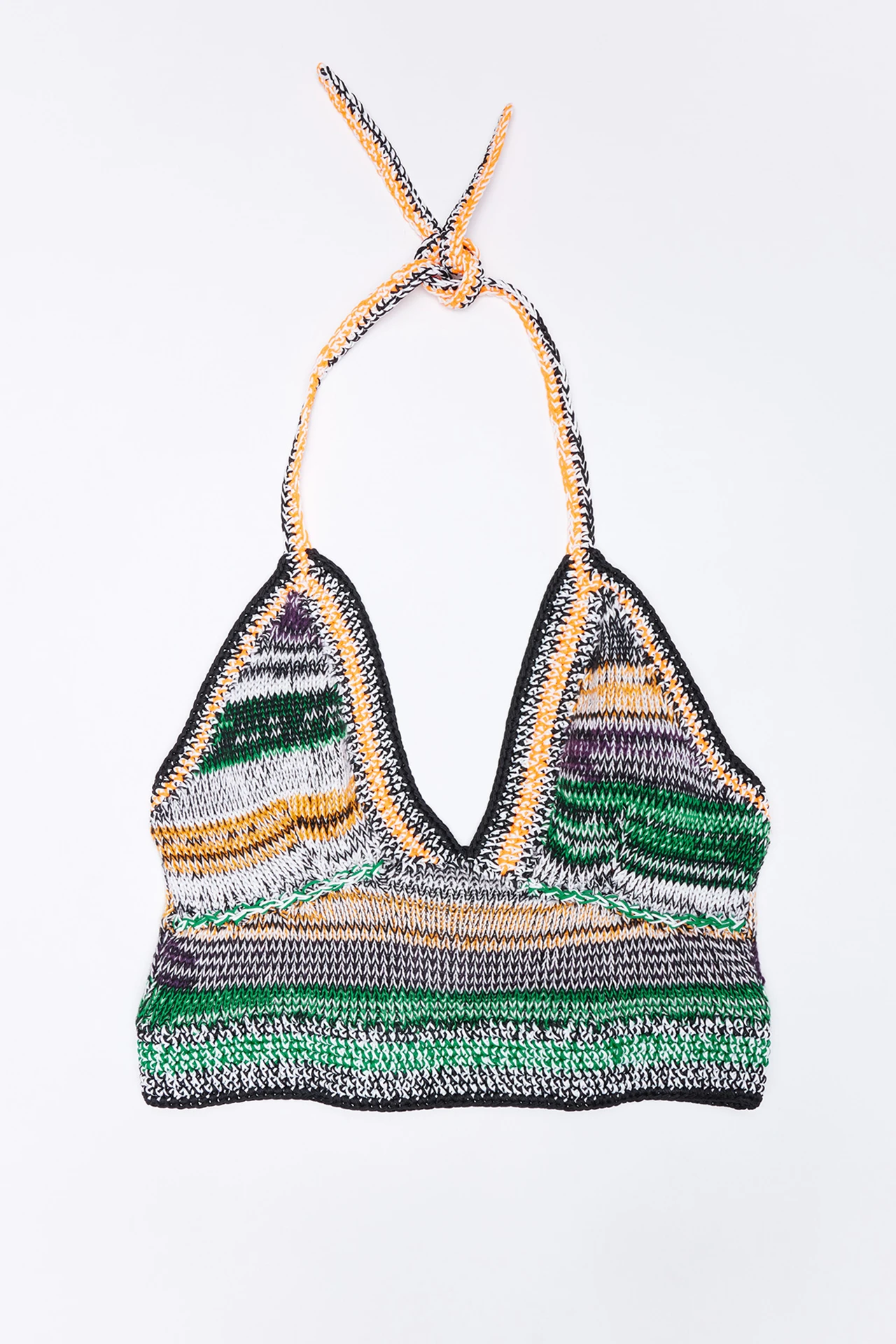 Summer encapsulated, this crop top features five colours in a soft striped knit finished with hand crochet edges to hold it’s shape to your body. Secured with a halter neck crochet tie, Elaine keeps her cool all summer long. This style is true to size. We recommend selecting your standard European size. Designed in London | Handcrafted in Spain