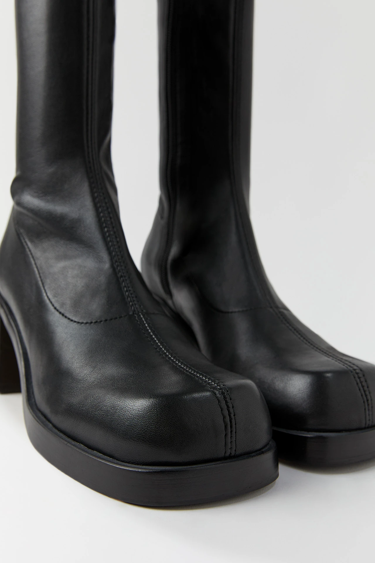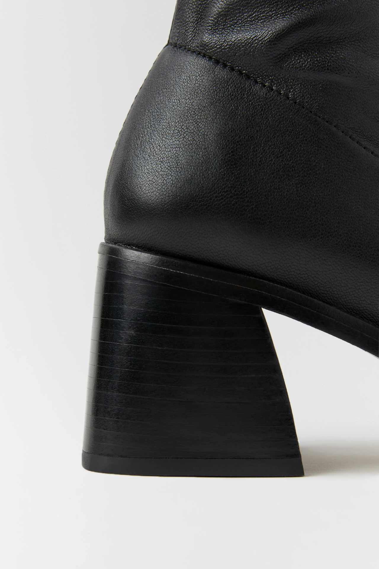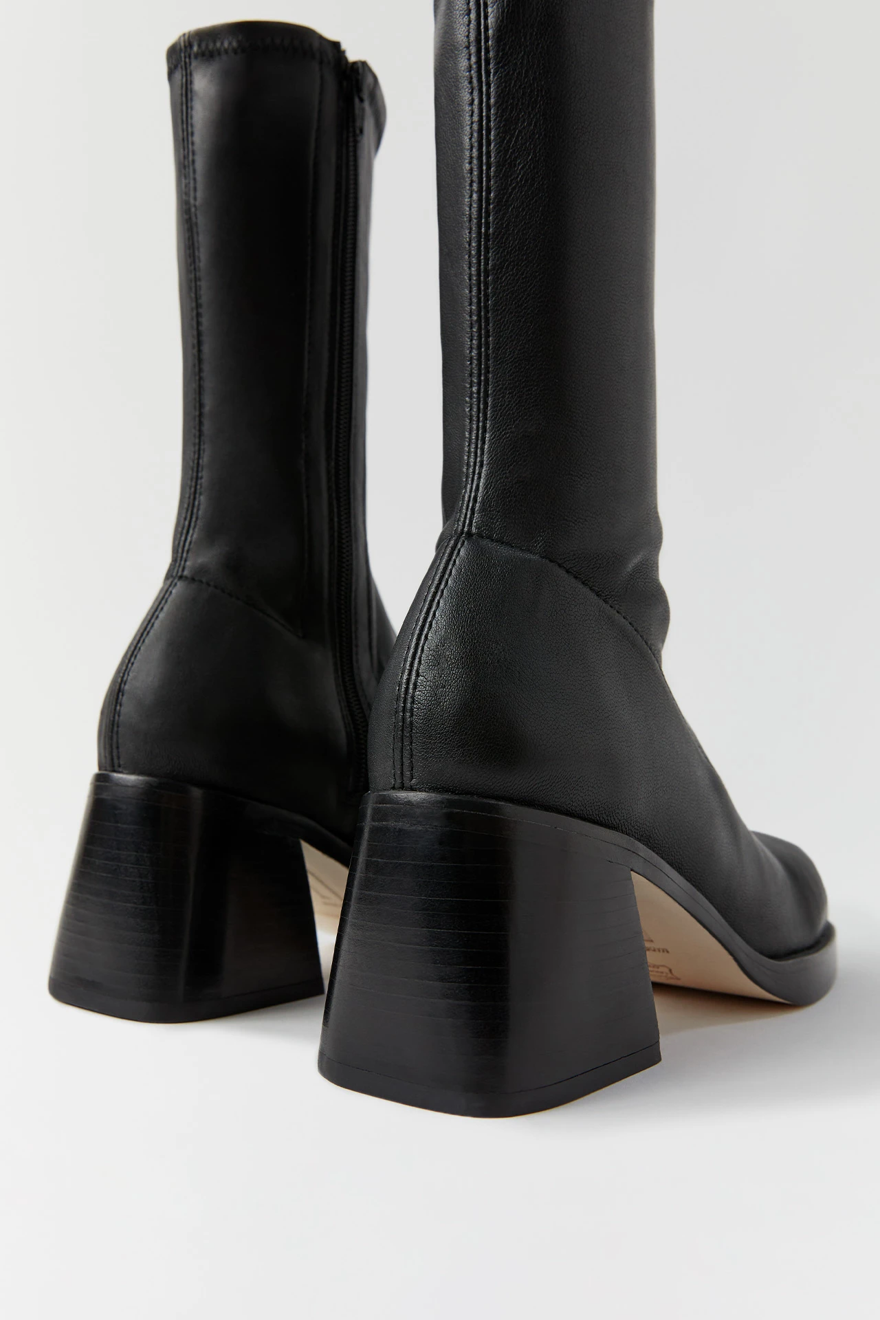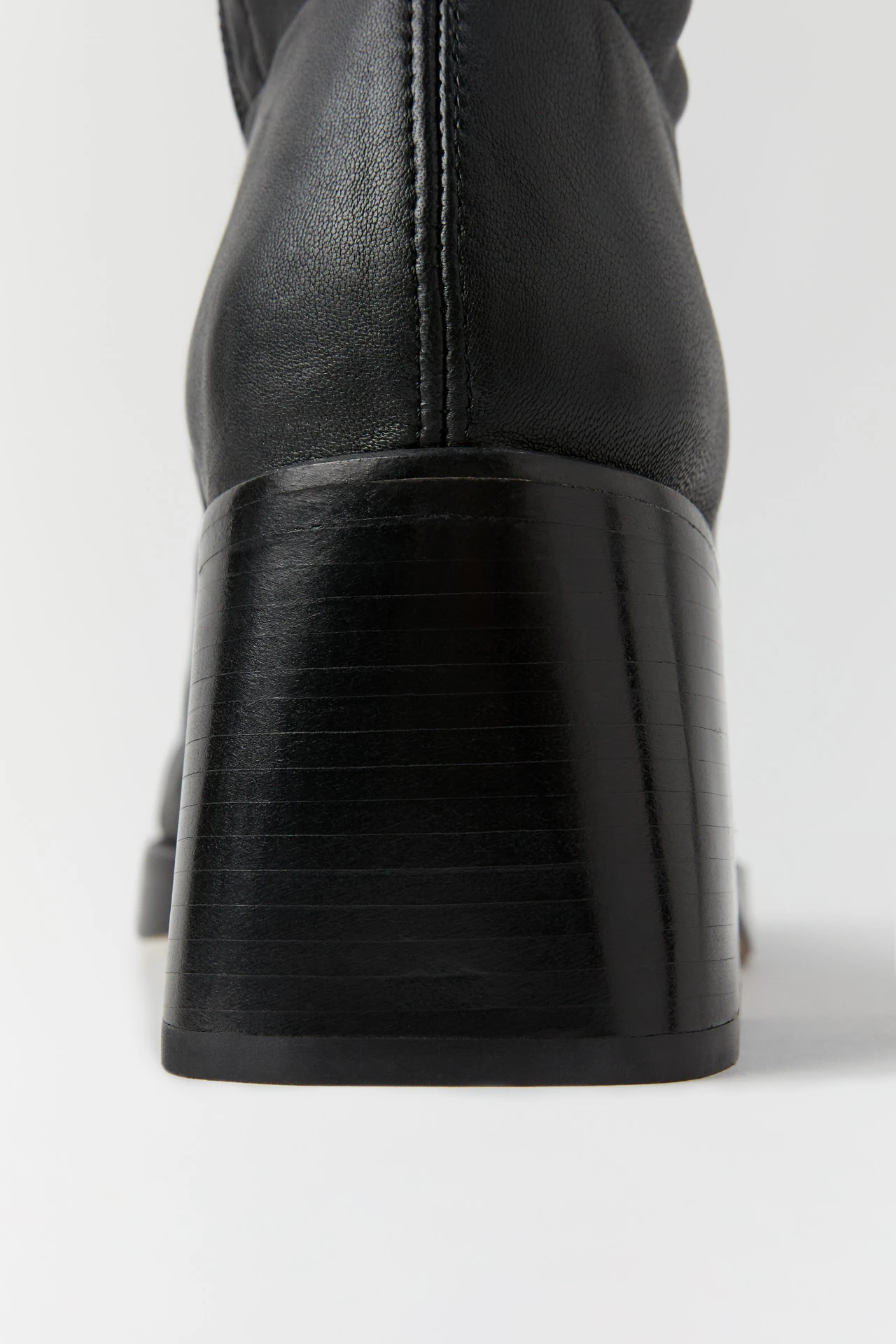 With her round extra character toe and slanted stacked leather heel and platform, Elke is Hedy’s petite younger sister. With an upper crafted from stretch lamb leather complete with a discreet inside zip, she serves a snug, flattering mid-calf fit for all shapes and sizes. Finished with memory foam insoles for enhanced comfort as well as our signature cow leather lining and outsole with rubber heel cap and invected toe, Elke is an everyday Icon.