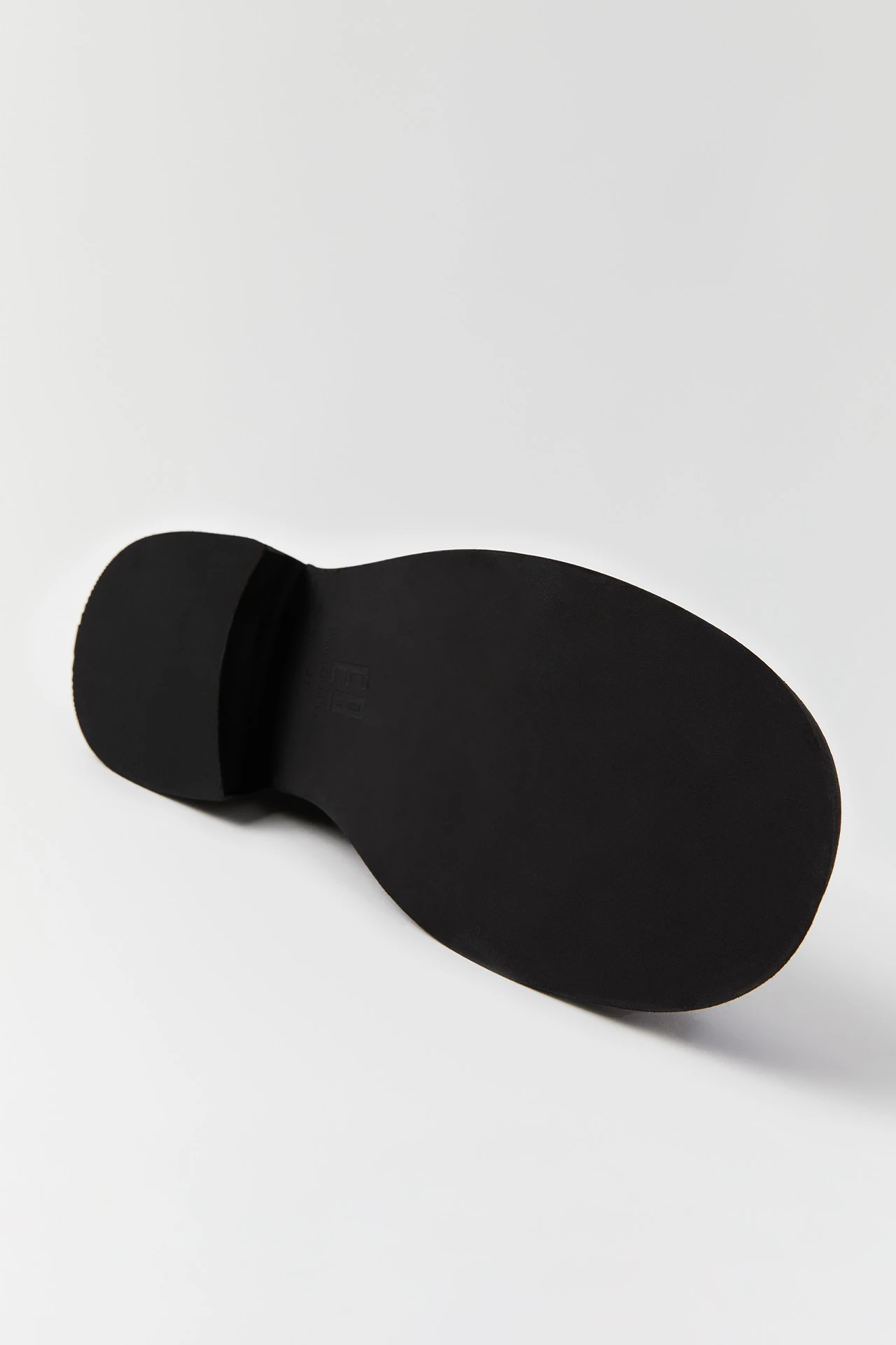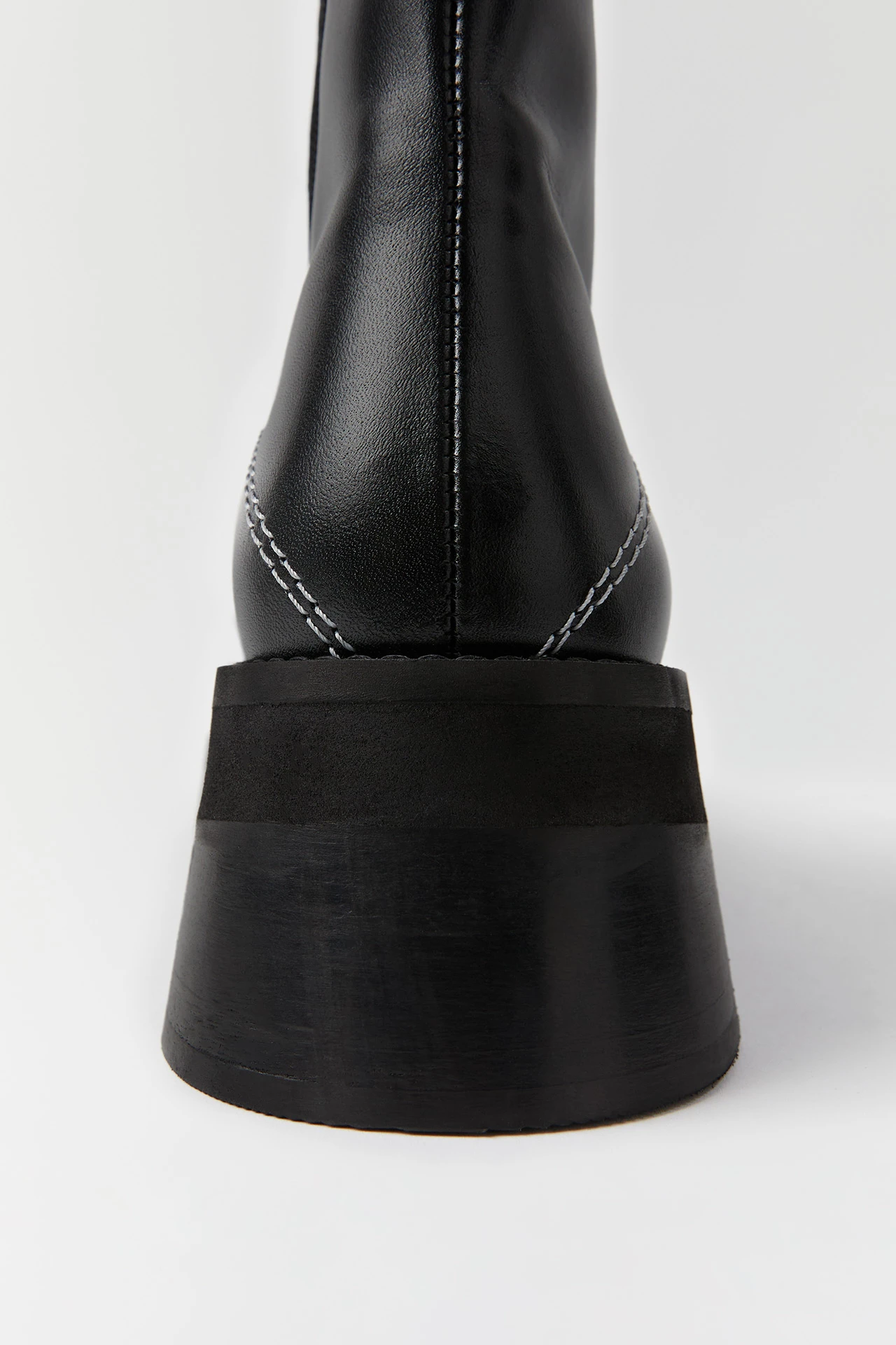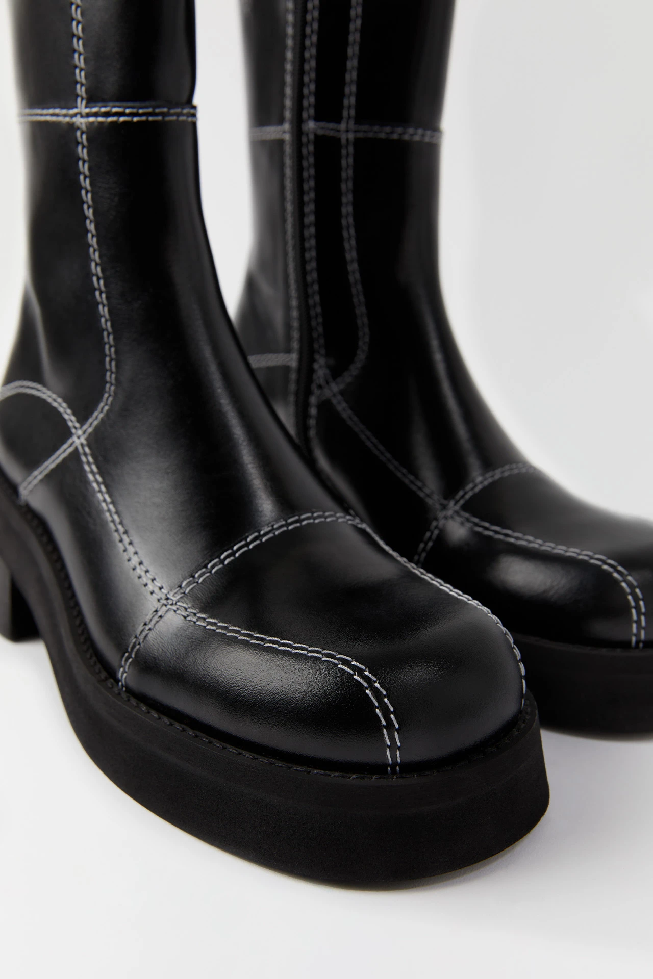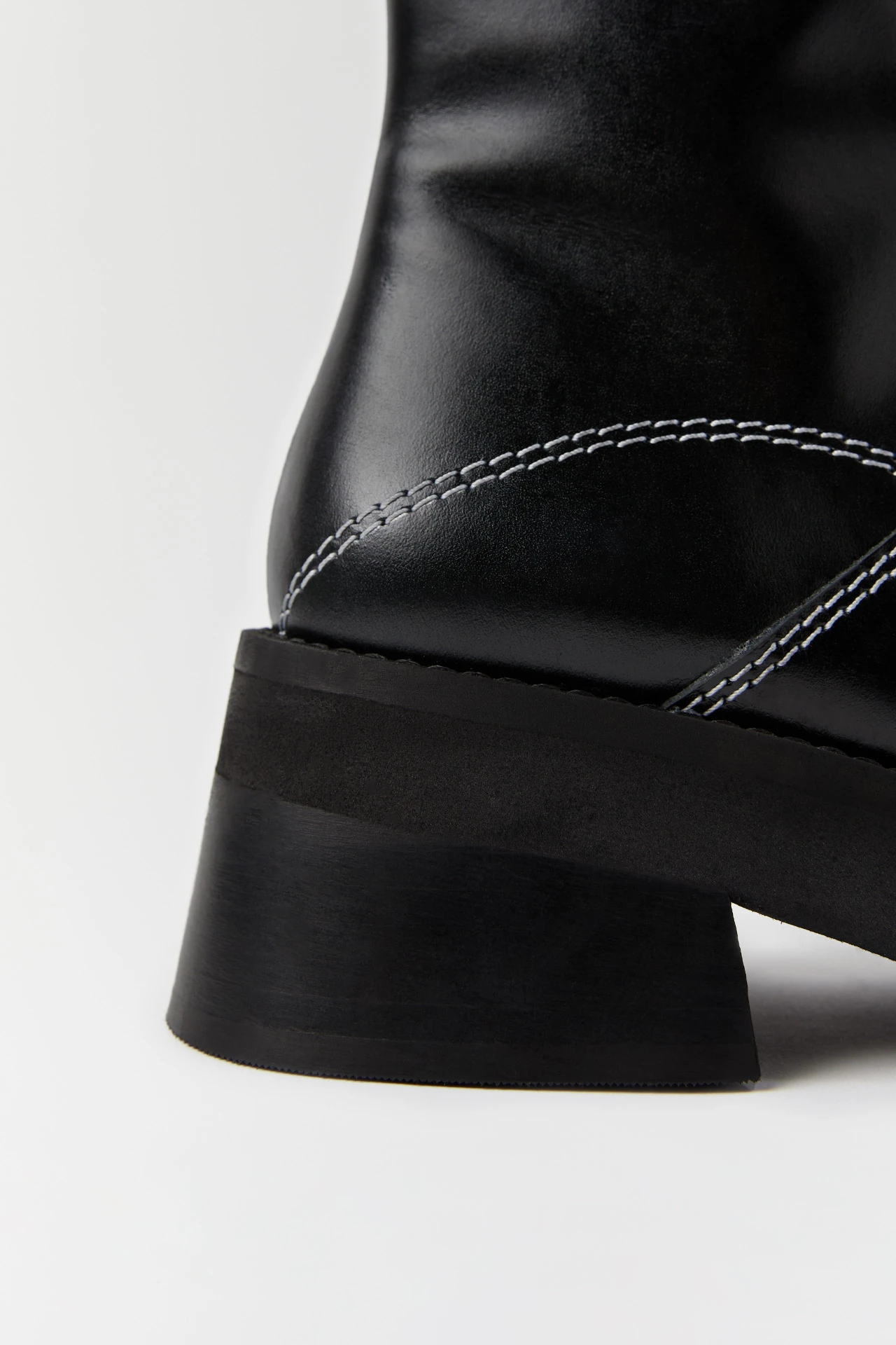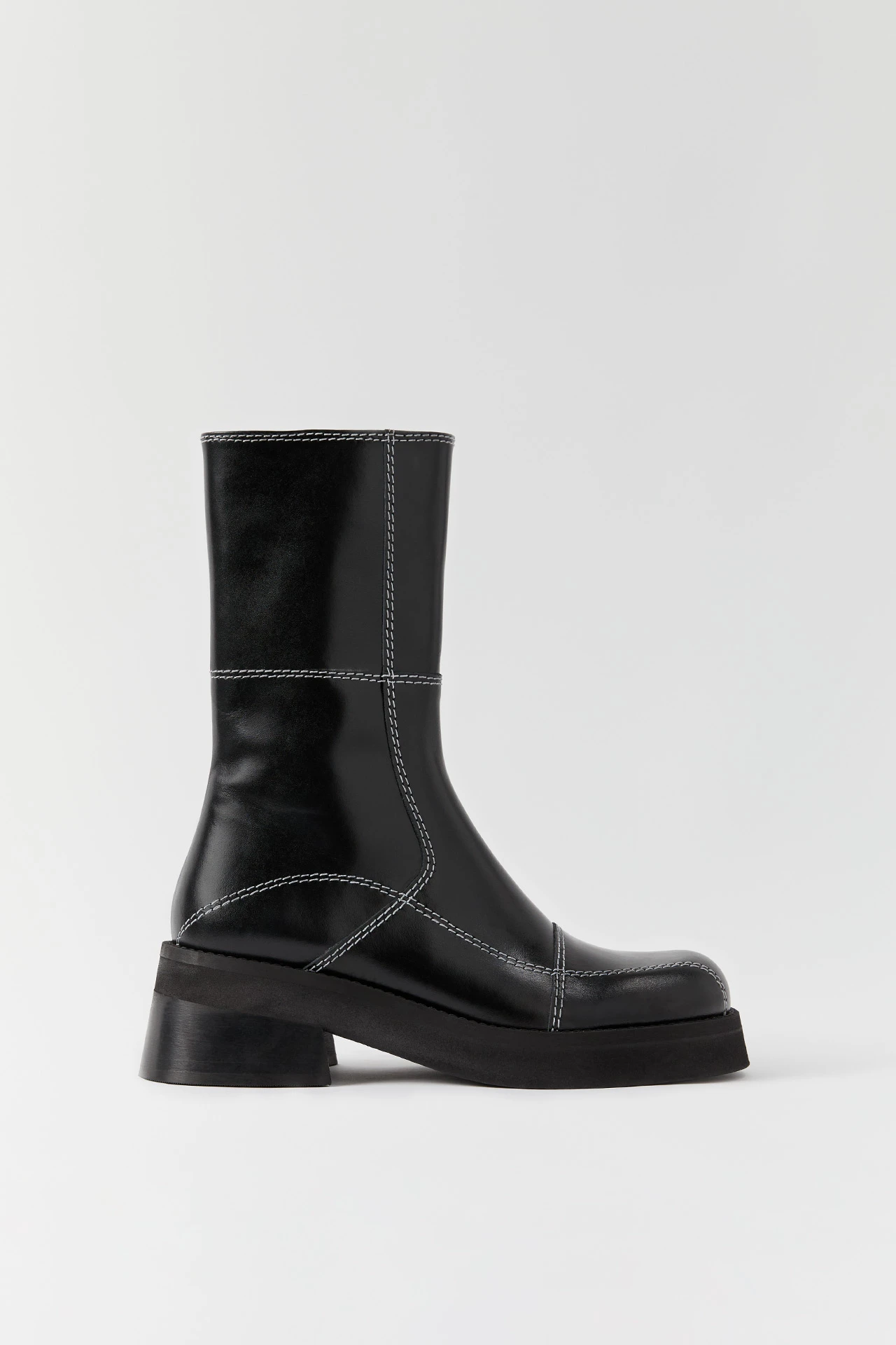 Crafted from a series of black leather panels and joined with contrast white stitching atop a robust rubber sole with a low heel, Heya is the not-your-everyday boot you can actually wear every day. She’s even got an inner zip and subtle elastic gusset to really optimize your fit.