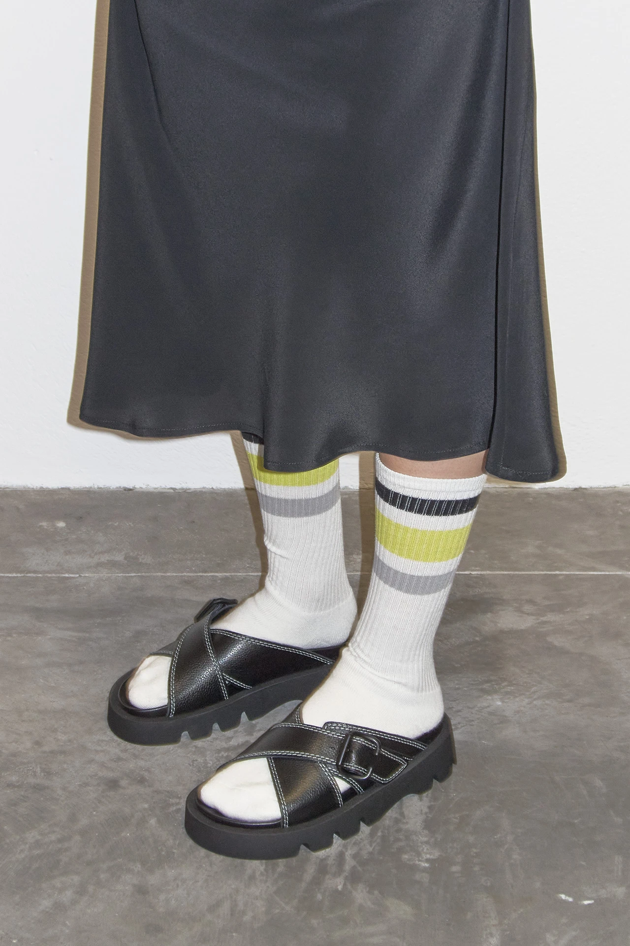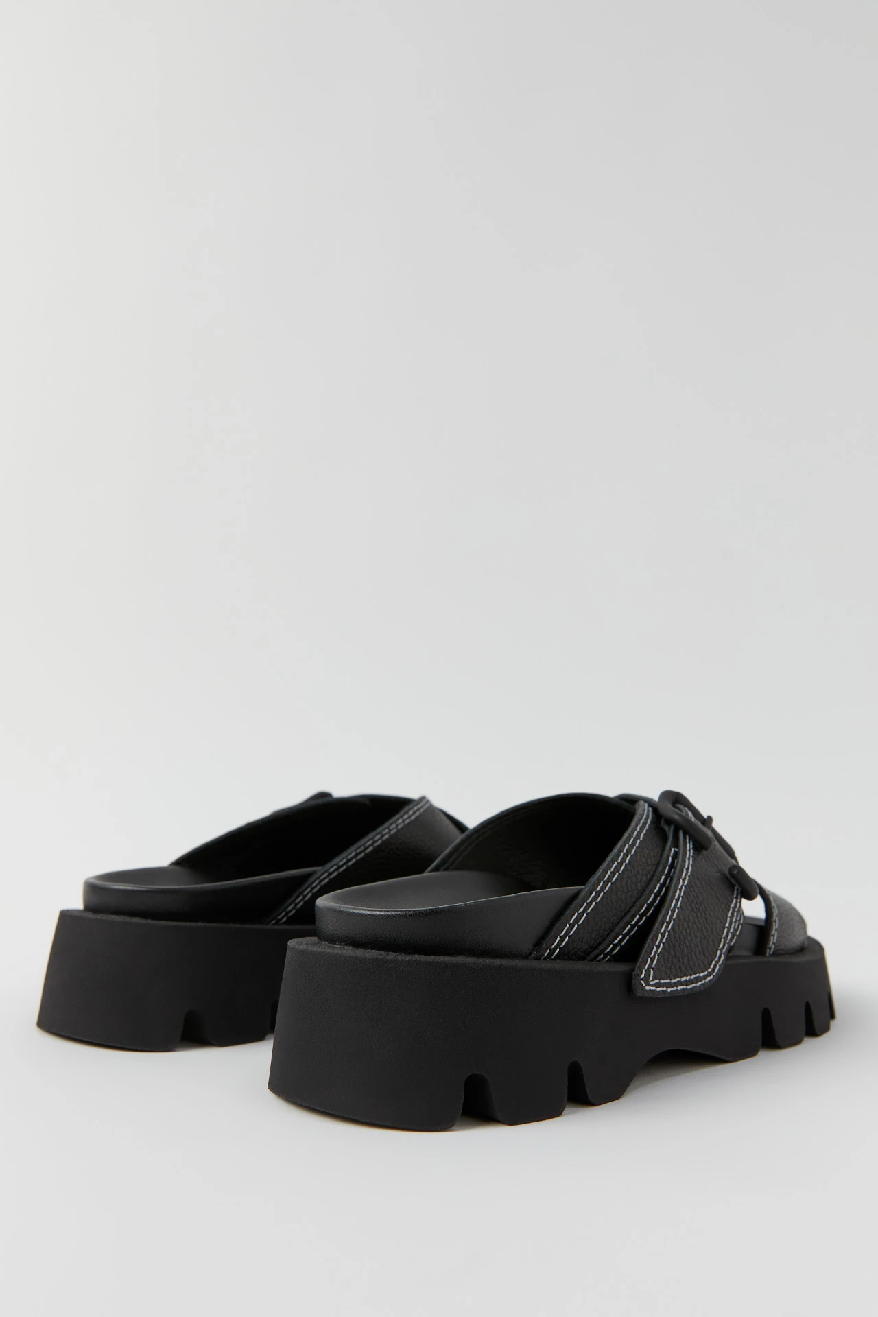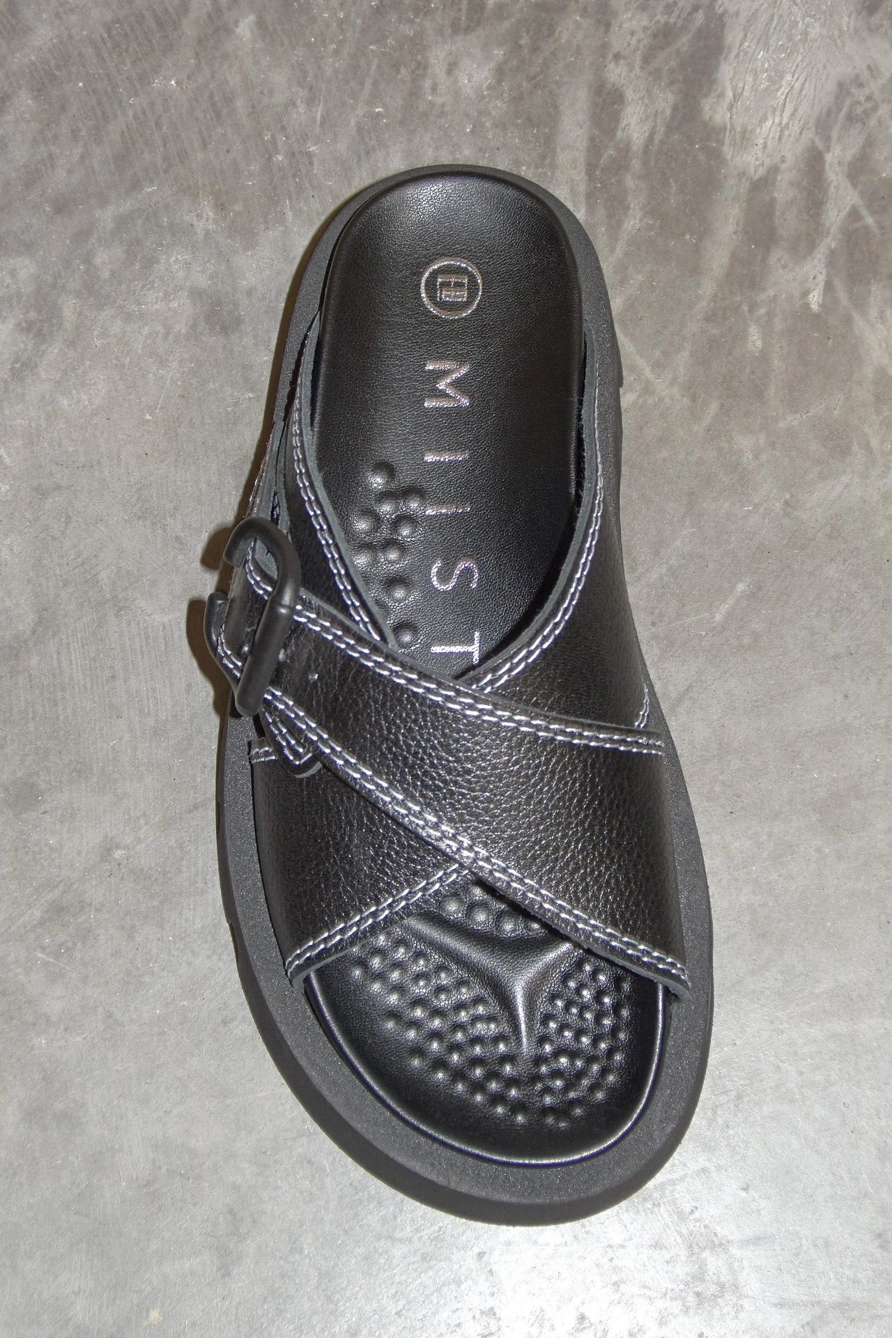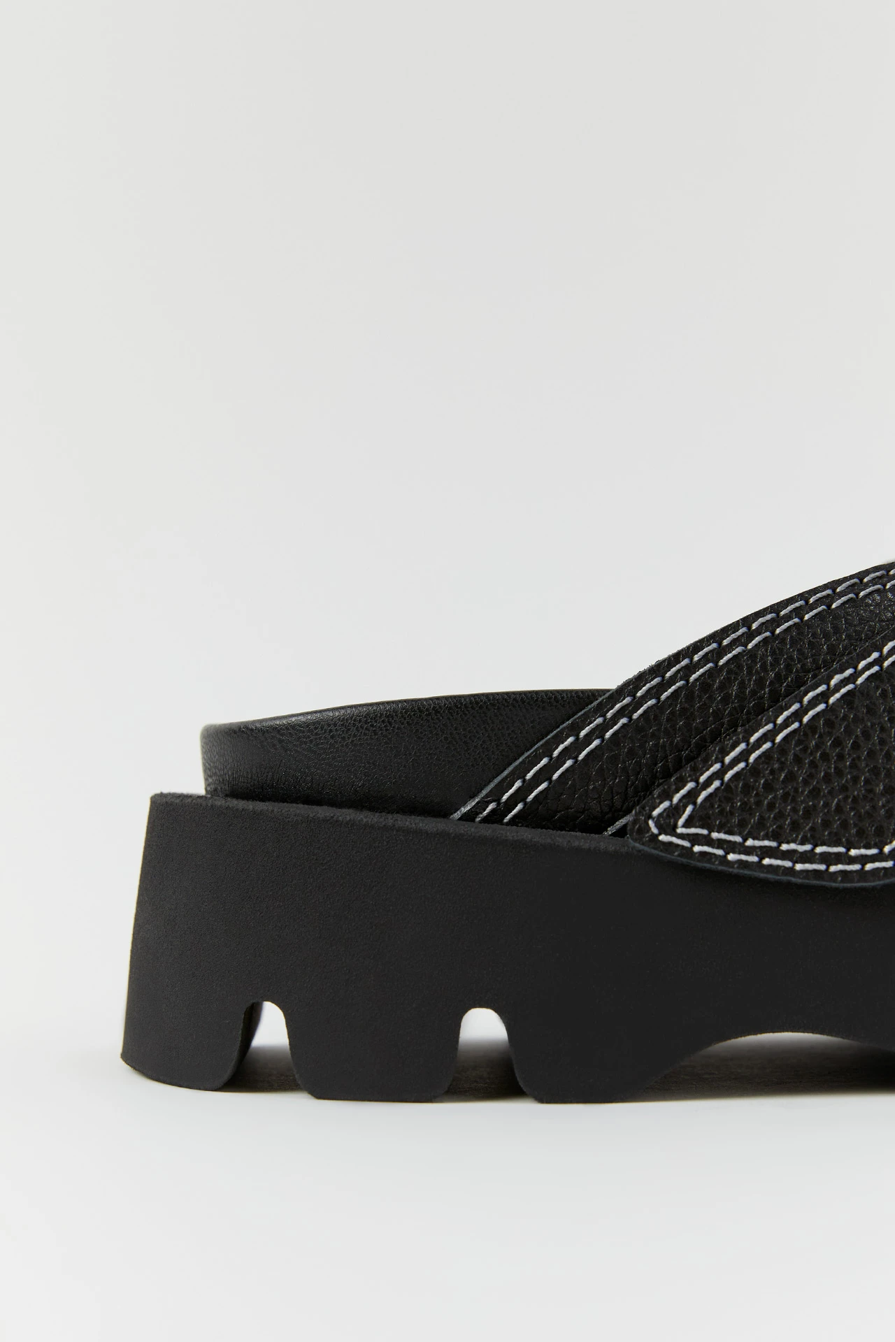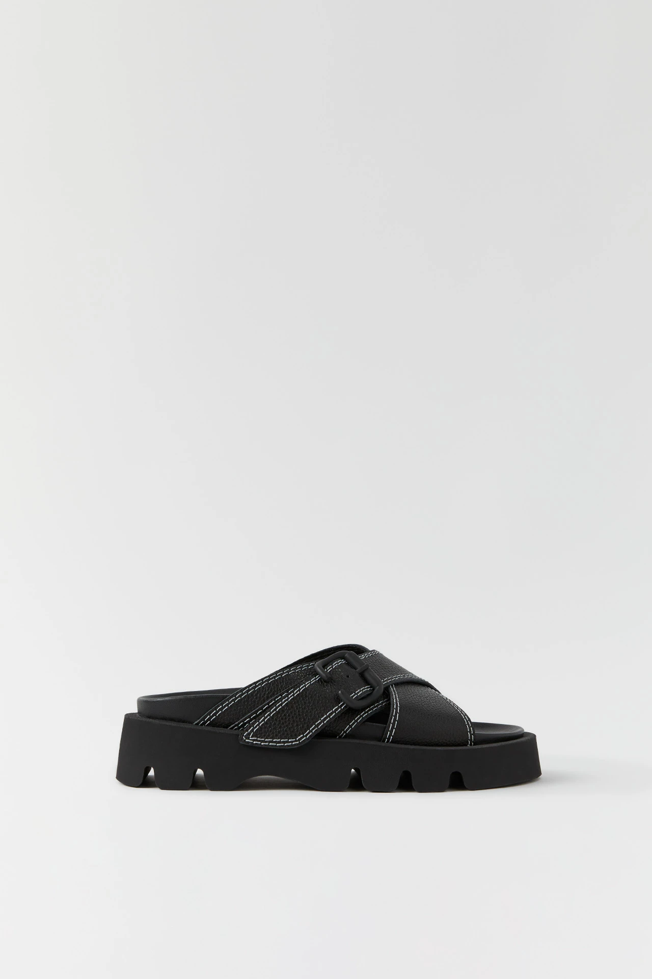 Lacey is a lady of robust proportions. Her crossed wide straps are formed of tumbled leather, complete with contrast stitching and a rubberised metal buckle for optimum adjustability. She’s finished with a thick rubber sole with deep rolling cleats for daily summer stomping.