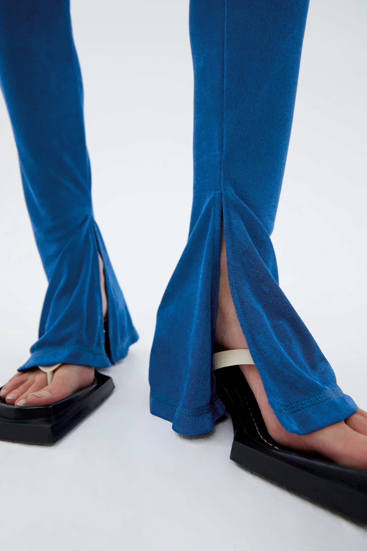 Leni hugs you close in all the right places. In smooth, sumptuous, skintight blue viscose (Polyster/Elastan), she reaches high up to the waist and plummets down to the ankles where she fans out in a flattering flare complete with an inner slit. She makes you realise how fitting it is to call trousers ‘strides’ – you’ll slide right into her and stride straight out the door.