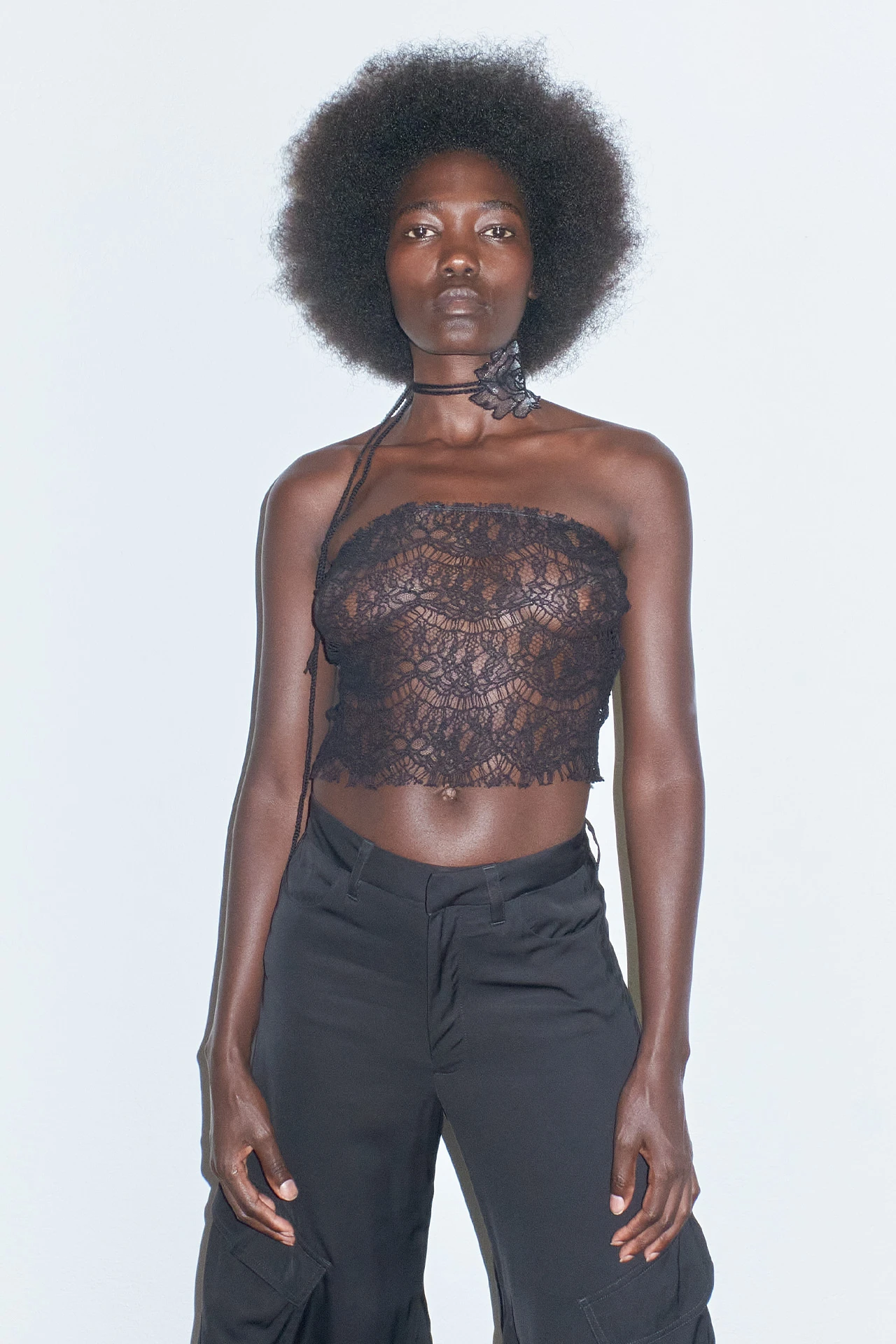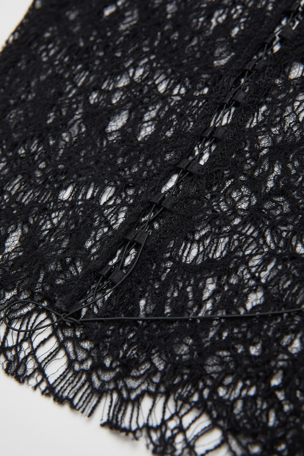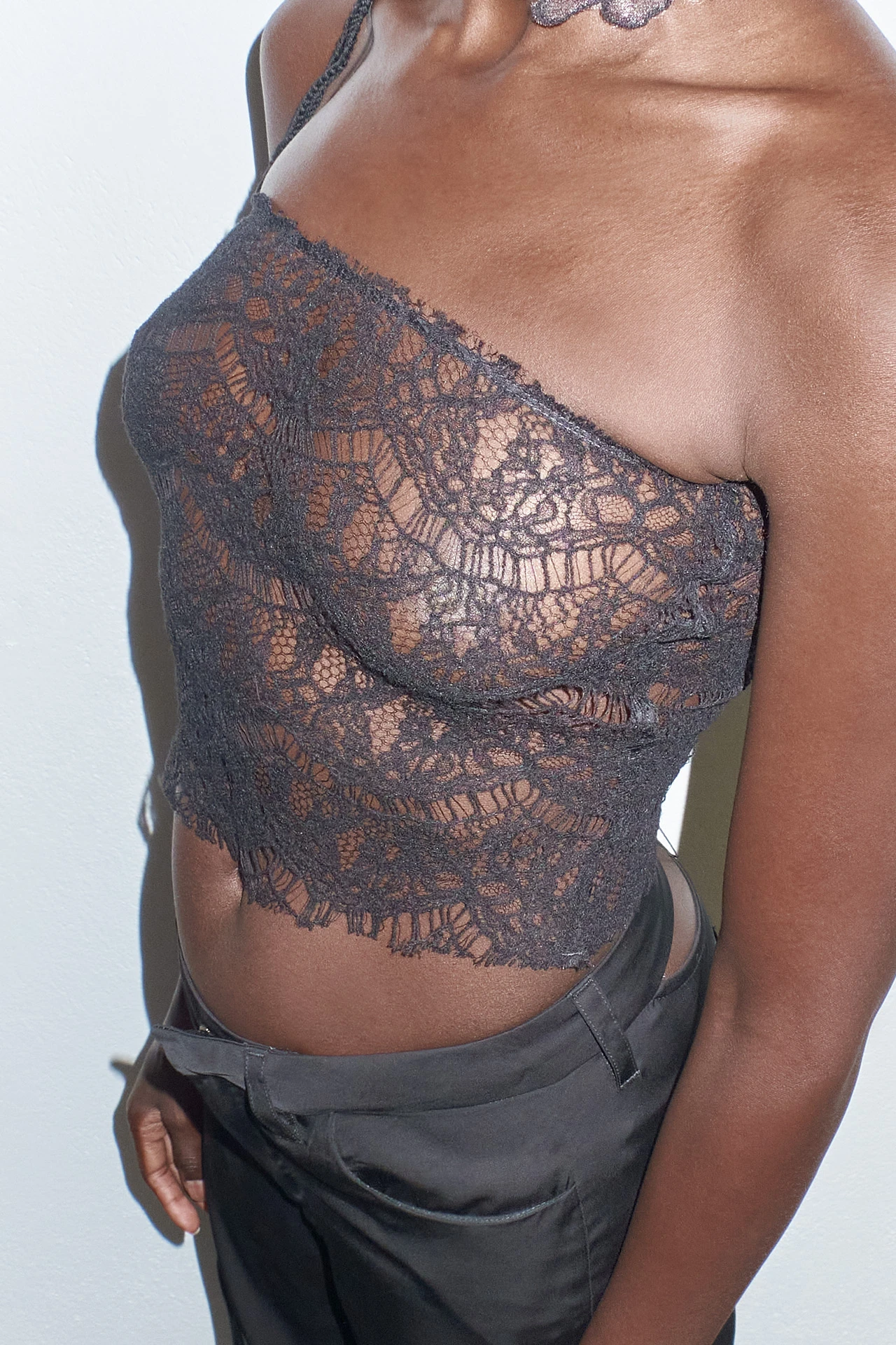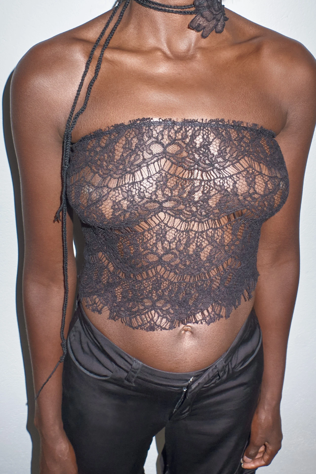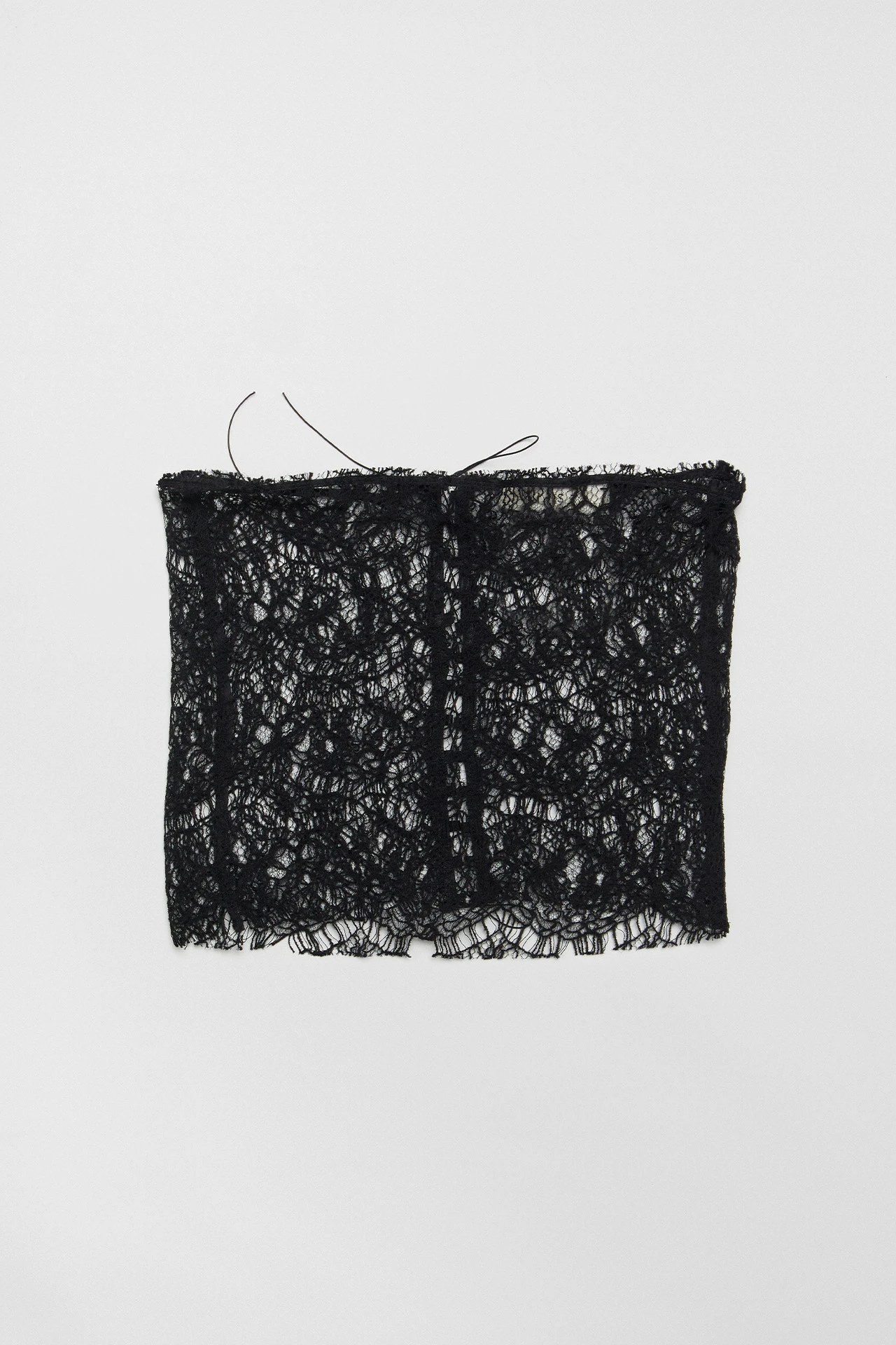 Lili is a black corset for layering under or over – or wearing with nothing else at all. She’s strapless, forming a straight line to the top of the bust, and is hem free both top and bottom. She ties up at the rear with a fine lace, allowing you to adjust her fit to your physique.