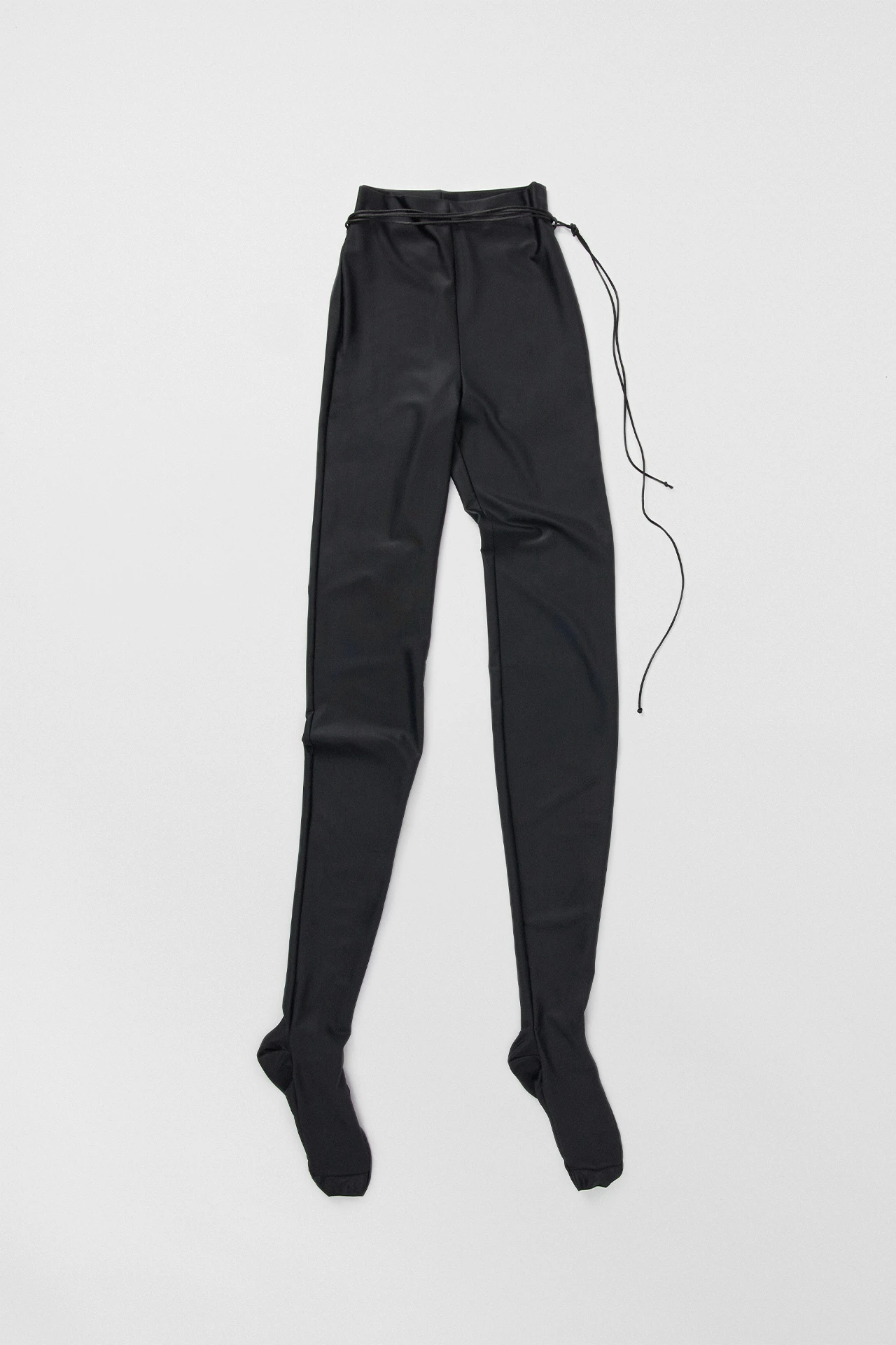 Luiz proudly presents the marriage of leggings and hosiery. Formed of stretch fabric with a slight shine, they run from a high waist right down to the toes – no socks necessary. The waistline is finished with a long lace to loop and tie as you please.
