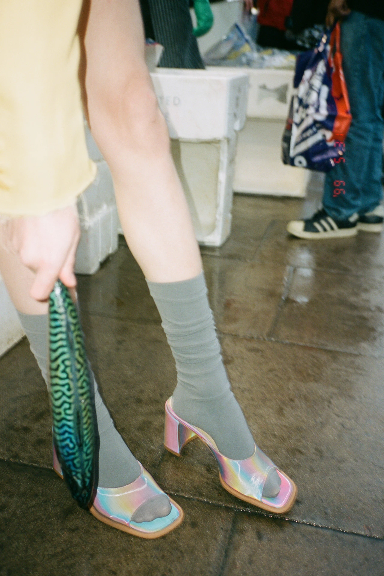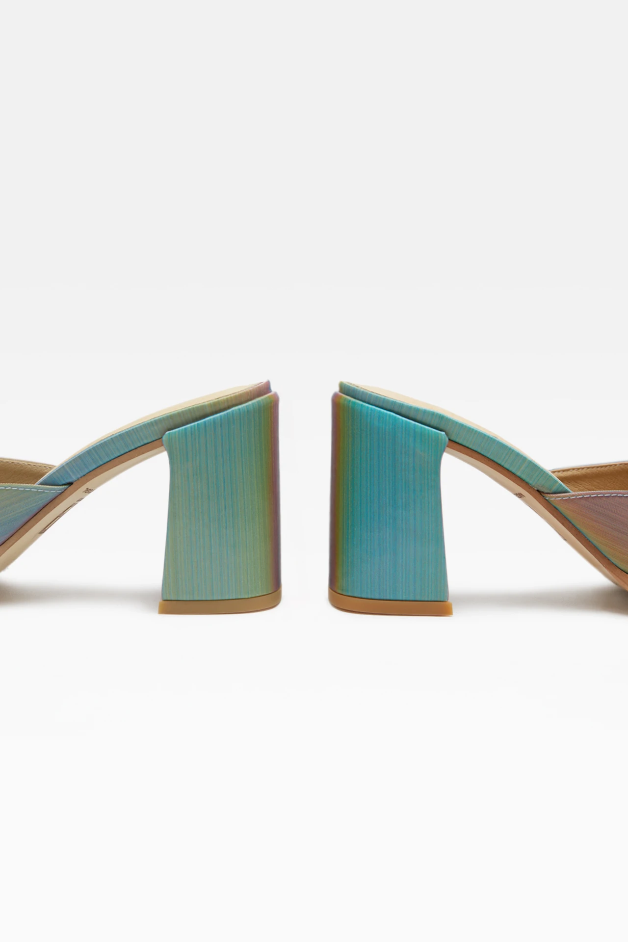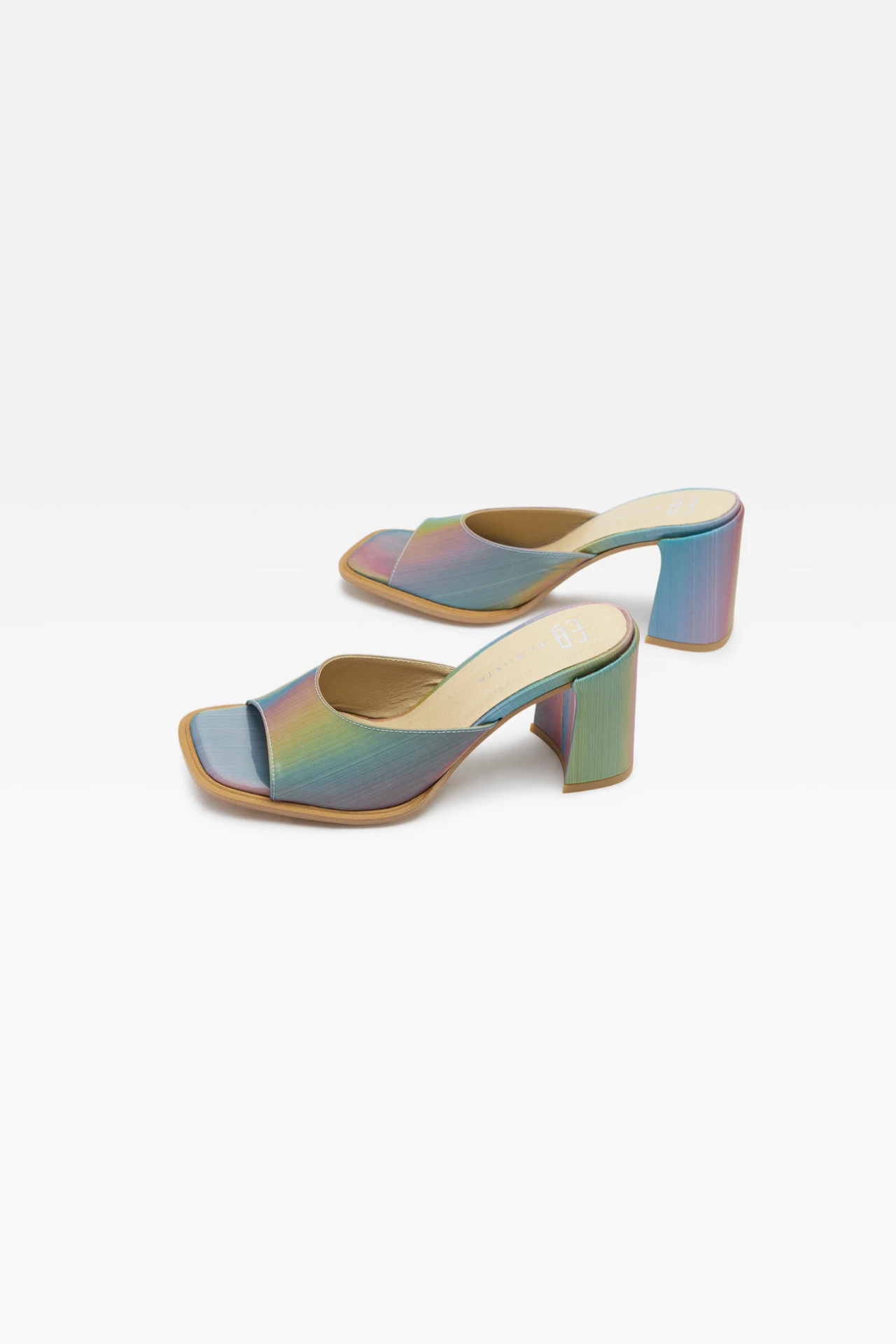 Our best-selling Marlo sandal is much in demand and she’s back. The hidden memory foam insoles and the softened square toe means comfort is key. With an 8cm heel, all in blue rainbow effect, this is a classic with an edge. This style is true to size. We recommend selecting your standard European size. Please note, due to the nature of the metallic finish some colour may rub off in use. It does not harm the skin, and it does not show when wearing.