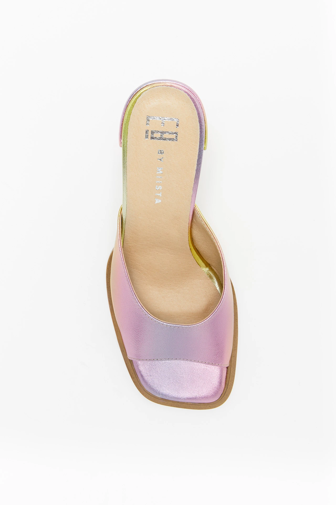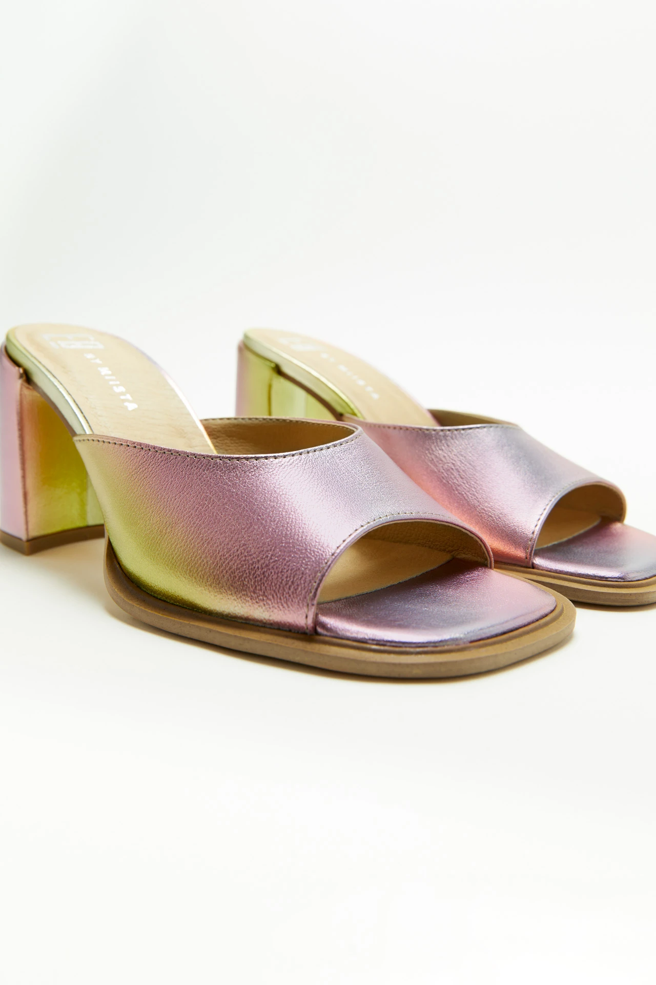 An E8 by Miista favourite, Marlon will take you dancing through the endless summer nights. Comfort and support is key with an easy slip-on mule upper, soft square toe, padded insoles and solid block heel – all in a disco pink and gold dégradé metallic leather. Finished with ultra-cushioned memory foam insoles, leather lining and rubber outsole. Heel height 8 cm. This style is true to size. We recommend selecting your standard European size. Please note, due to the nature of the metallic finish some colour may rub off in use. It does not harm the skin, and it does not show when wearing