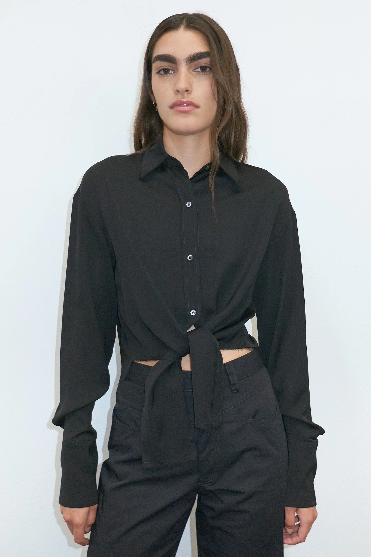 Marques respects the elegant, linear traditions of tailoring, but she also refuses to be boxed in. Her slightly cropped fit breaks with convention, dropping down into an extended central panel. The negative space created elongates the legs and flashes those hips sashaying across the floor.
