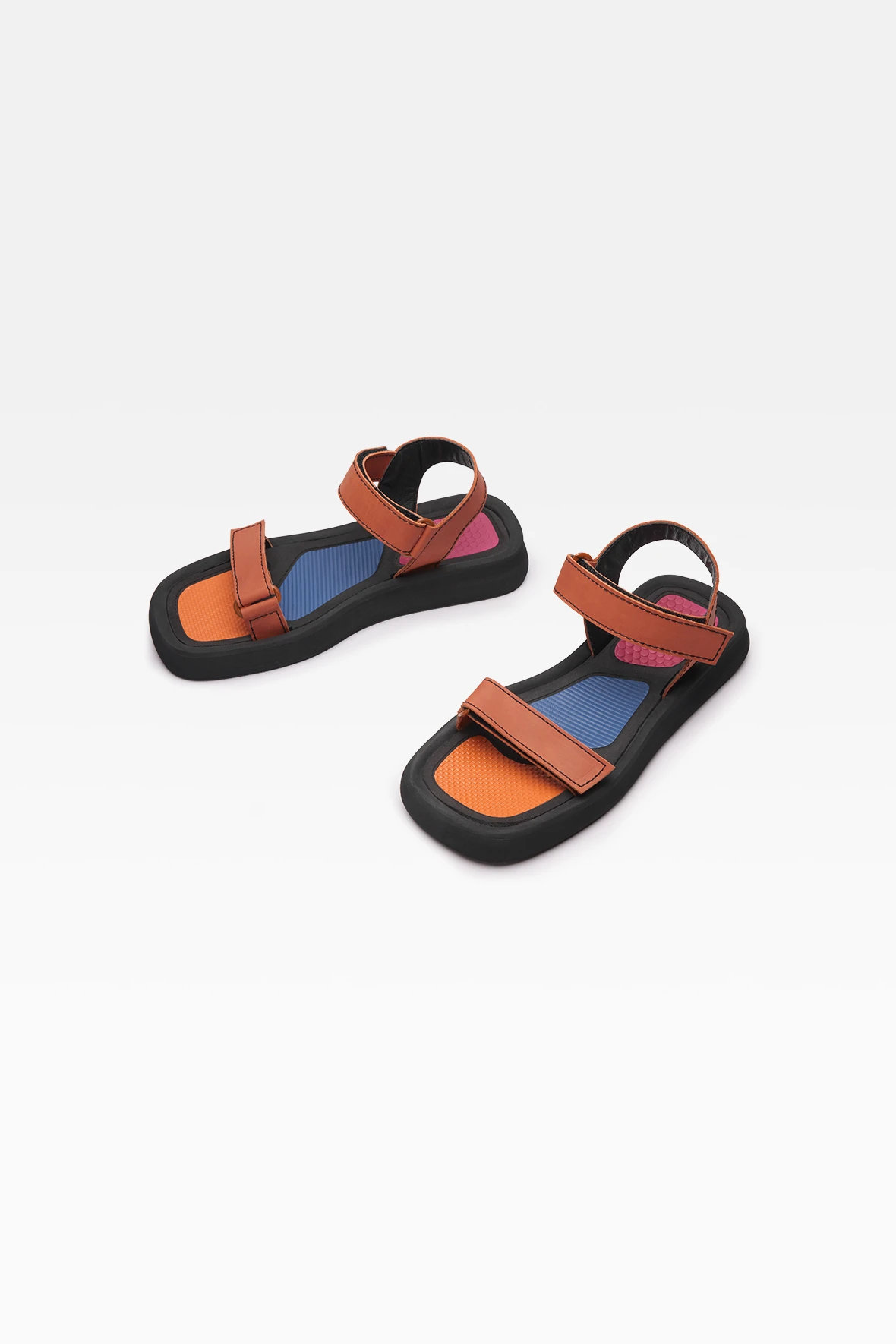 Childlike playfulness takes over the design of Neysa whose cushioned rubber sole features unexpected splashes of bright yellow and green on the insole. Strap in to the ultimate comfort with orange adjustable velcro straps with contrast stitching. Finished with ultra-cushioned memory foam insoles, leather lining and rubber outsole. Heel height 3cm. Designed in London | Made in Portugal