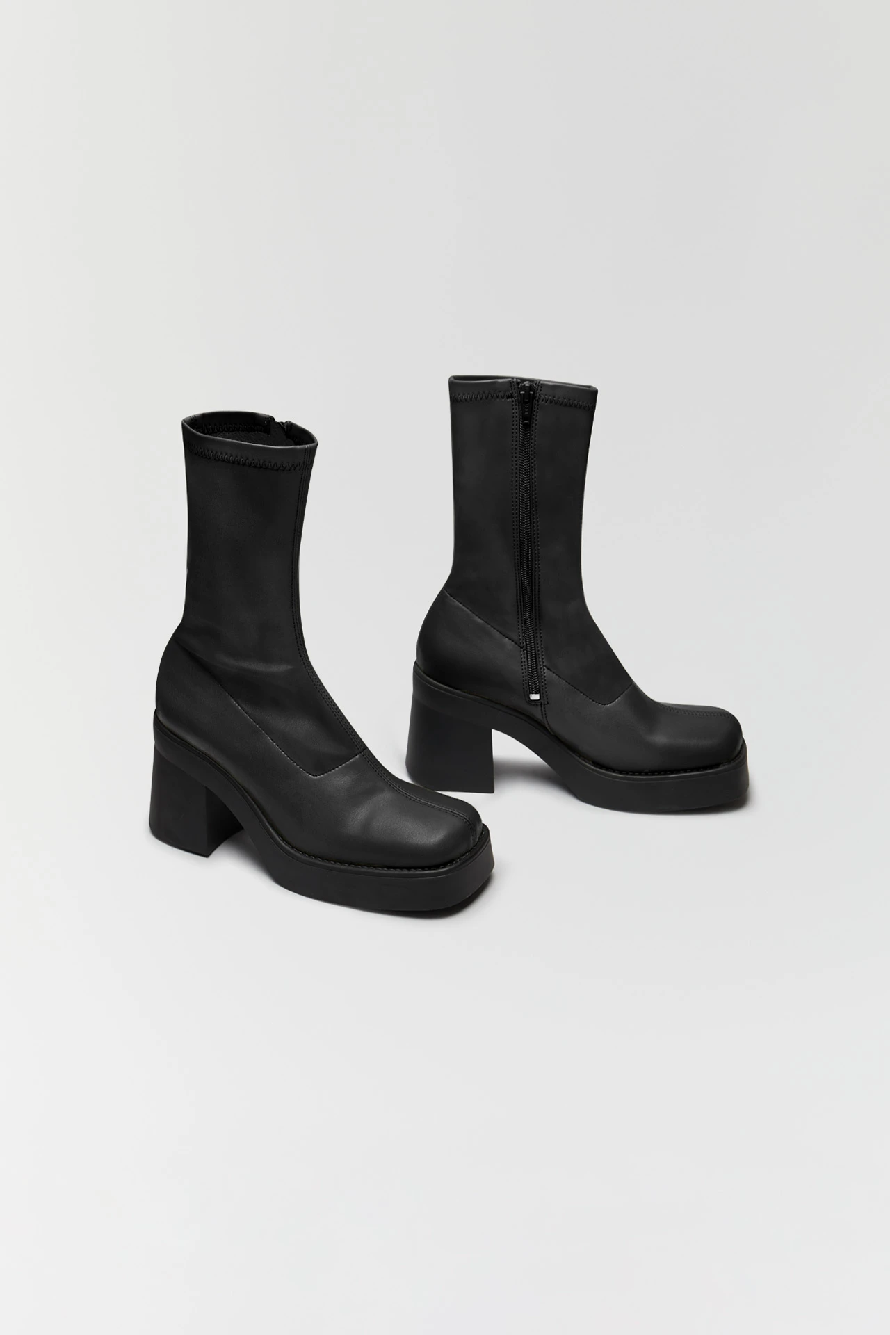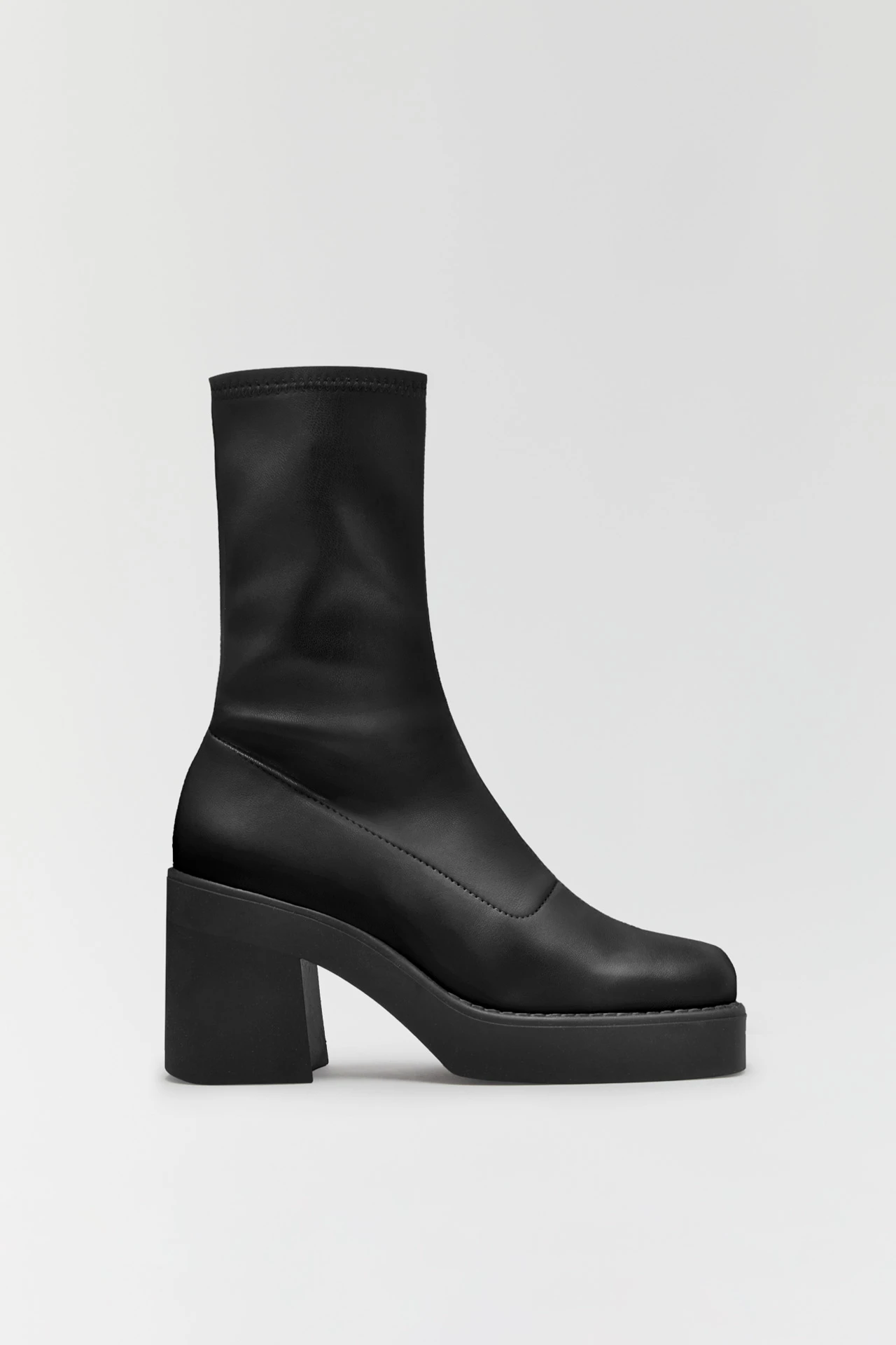 Noely is the quintessential 70s dancefloor boot. Her kick-flare heel bridges down to a thick platform, creating the foundations for her smooth-as-silk synthetic paneled stretch upper. Noely reaches right up to the mid-calf, embracing the ankle close with a sock-like fit.