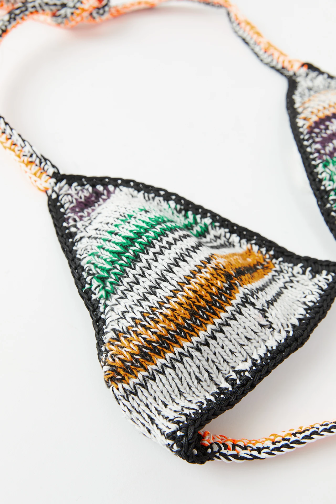 Onia will see you through a summer of freedom and pleasure. A soft triangle bra is crafted from a cotton knit comprising five colours and is finished with hand-crochet edges and ties at the neck and back. Perfect paired with our matching knit shorts, Berthe. This style is true to size. We recommend selecting your standard European size. Designed in London | Handcrafted in Spain