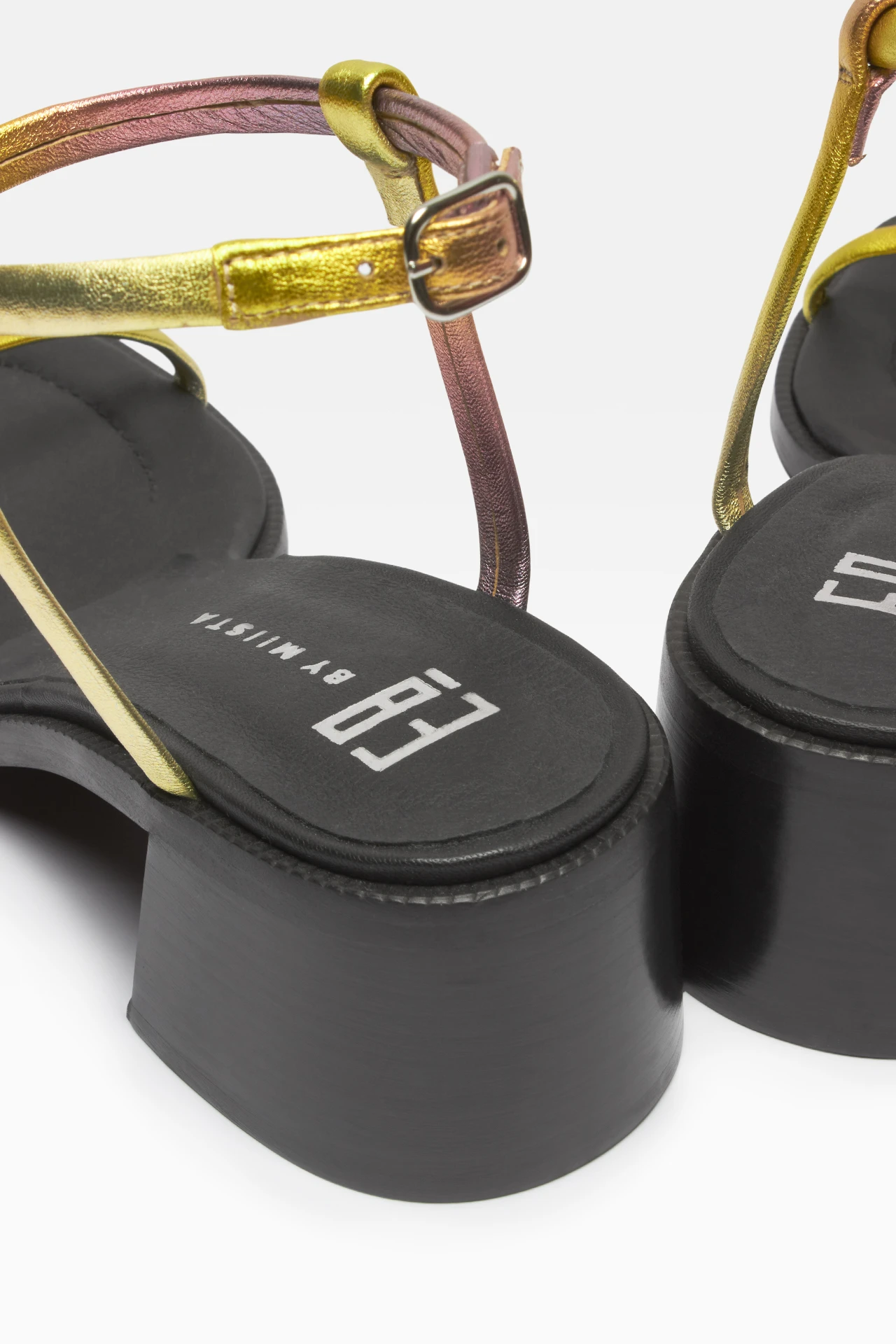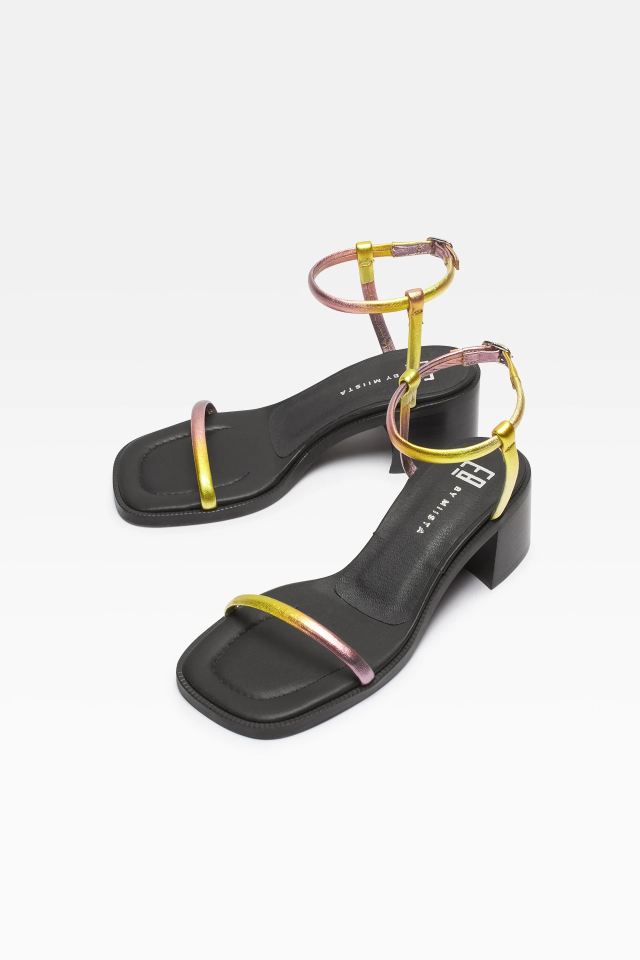 Petia is a sandal of perfect proportions where delicate skinny straps sit atop a solid block heel and softly square toe – proving opposites attract. Crafted from disco pink and gold dégradé metallic leather and featuring a buckle fastening on the ankle strap for a secure fit. Finished with ultra-cushioned memory foam insoles, leather lining and rubber outsole. Heel height 5.5cm. This style is true to size. We recommend selecting your standard European size. Designed in London | Made in Portugal