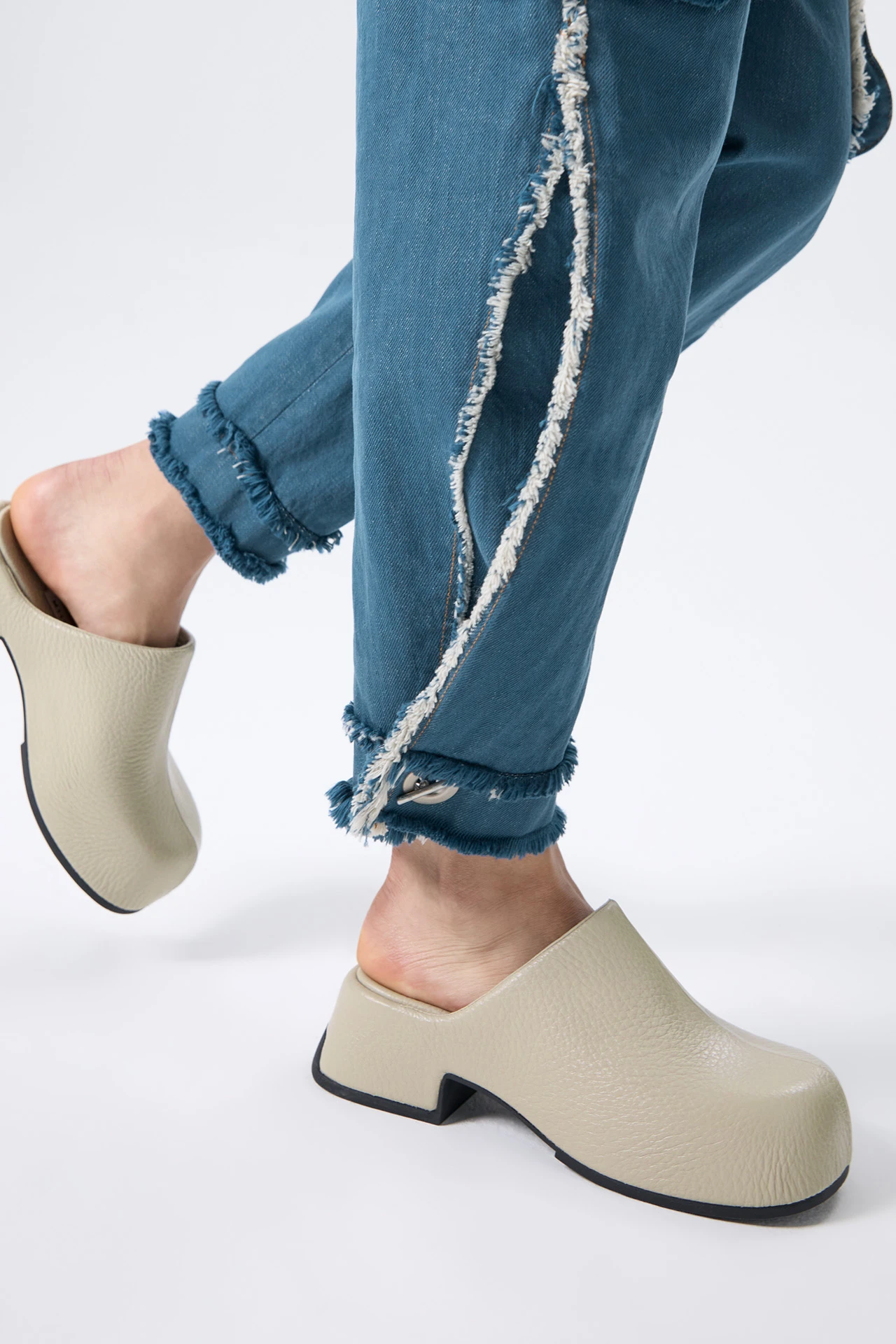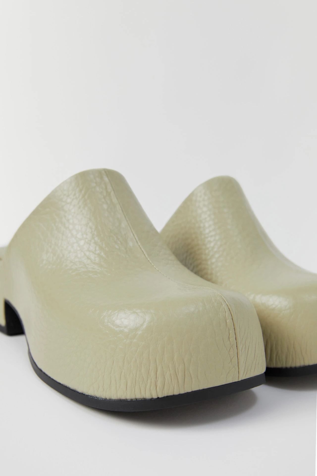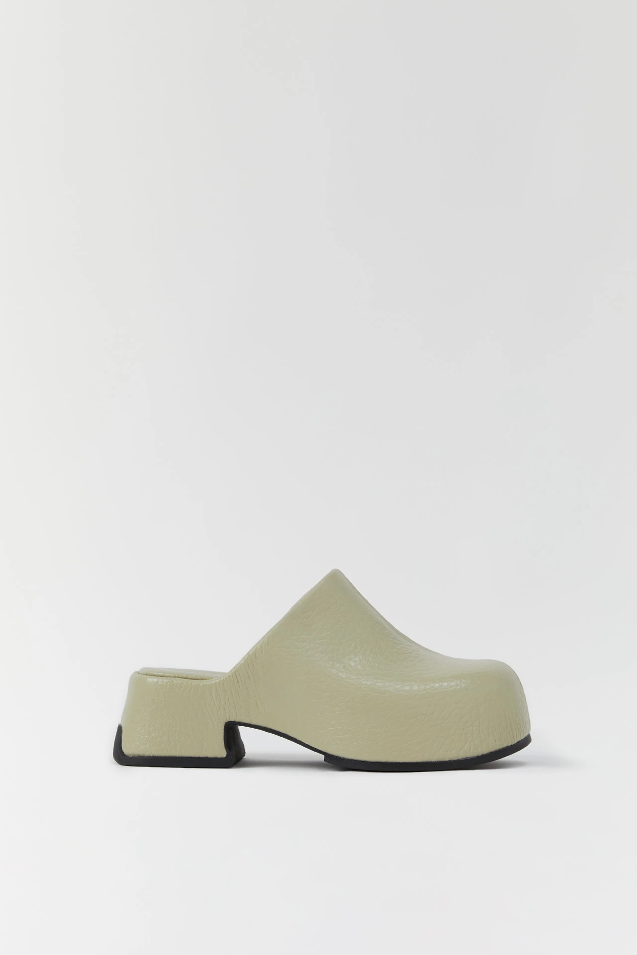 Pris isn’t just a clog. She’s the clog embracing every last detail of what it means to truly be a clog. Coated in tumbled, vegetable tanned cow leather, her interior is comprised of a single piece of rubber cast in Pris’ unique mould. Following shapely flowing lines, her upper projects outwards – almost oversized: this is a clog that knows how to take up space. Pris is complete with memory foam insoles and vegetable tan cow leather lining for enhanced comfort, with a contrast black rubber-coated sole that reaches right up the heel for added grip and durability. Heel Height 5cm This style is true to size. *We recommend selecting your standard European size, however for in between sizes, take the next size down. Designed in London | Handcrafted in Spain
