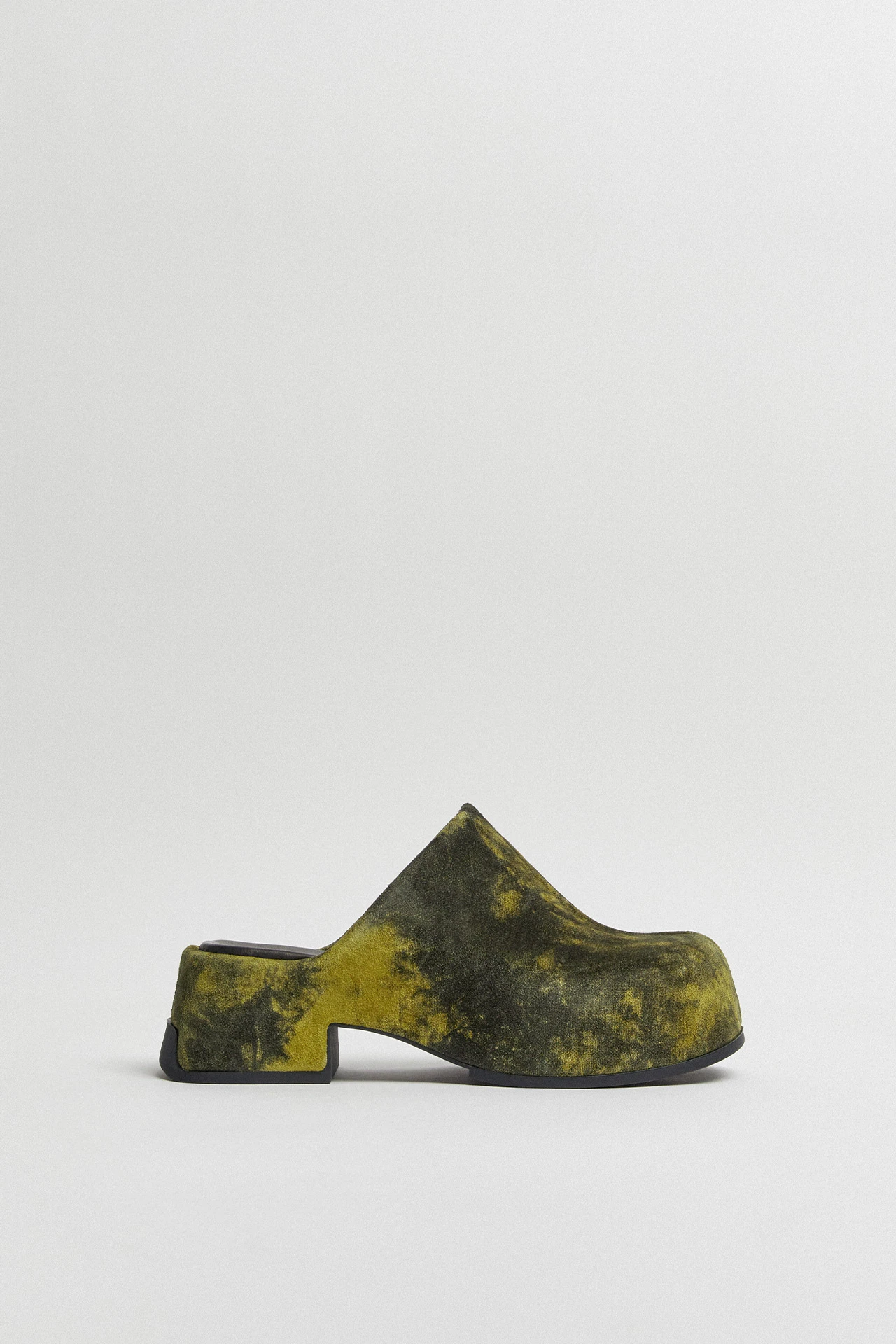 Pris isn’t just a clog. She’s the clog embracing every last detail of what it means to truly be a clog. Coated in acerbic black and yellow nubuck, her interior is comprised of a single piece of rubber cast in Pris’ unique mould. Following shapely flowing lines, her upper projects outwards – almost oversized: this is a clog that knows how to take up space. Pris is complete with memory foam insoles and vegetable tan lamb leather lining for enhanced comfort, with a rubber-coated sole that reaches right up the heel for added grip and durability.