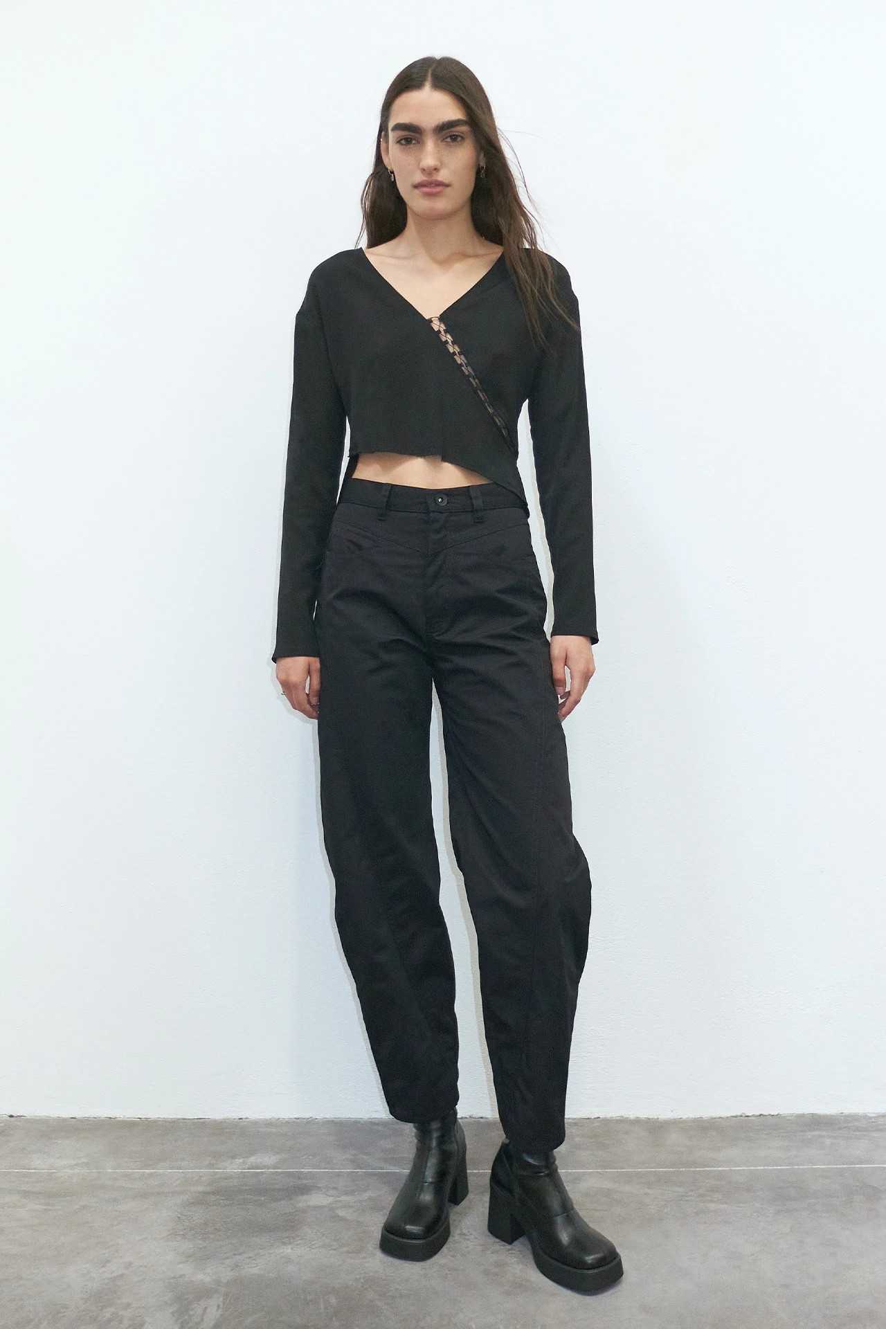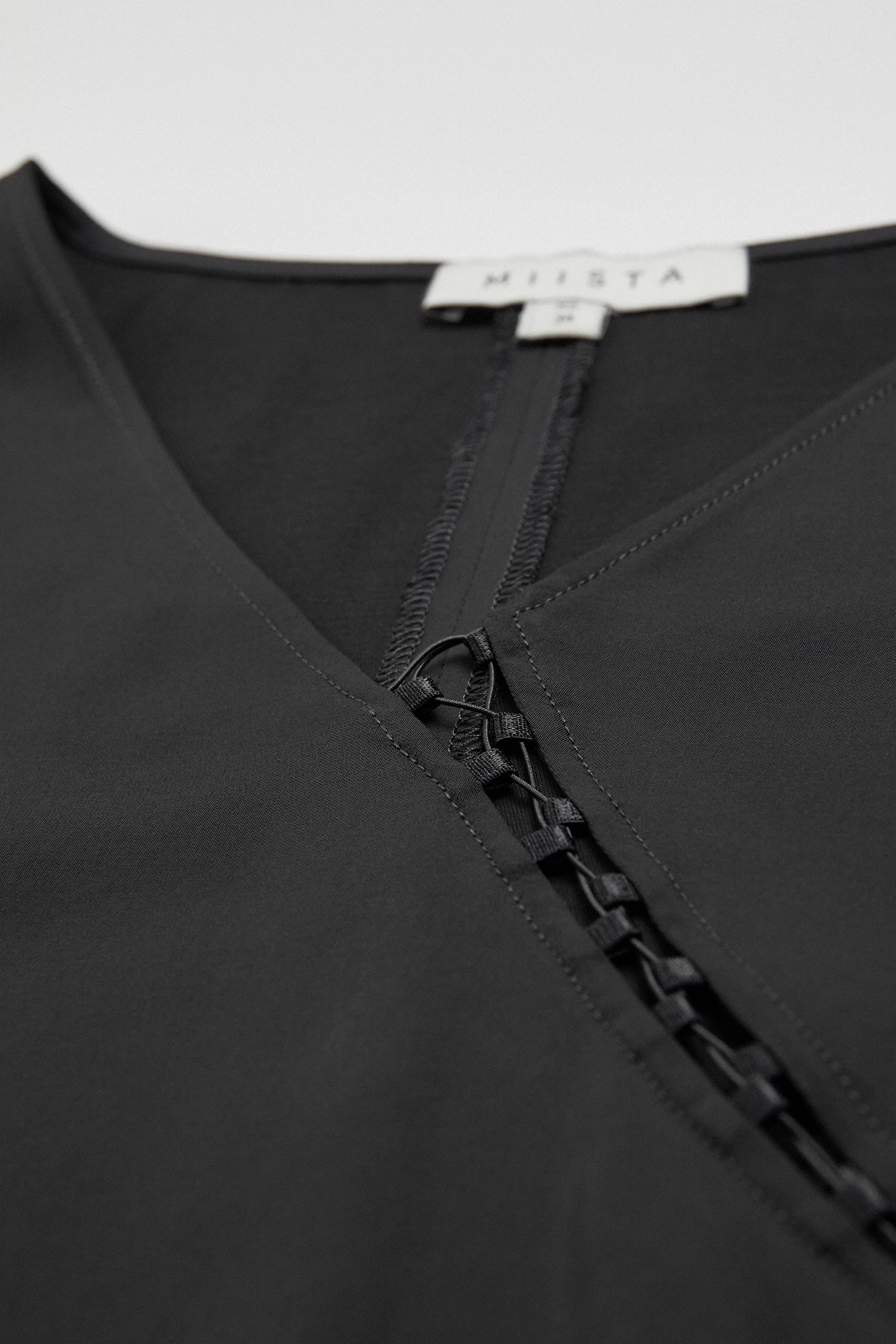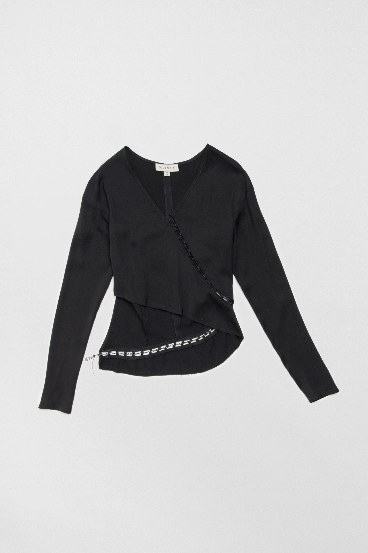 Reis is a long-sleeved, v-necked friend of a friend who got torn to pieces then laced back up again. She’s got a line of subtly revealing lace running diagonally from the base of her neckline right round to the outer edge of her back. This style is true to size. We recommend selecting your standard European size.