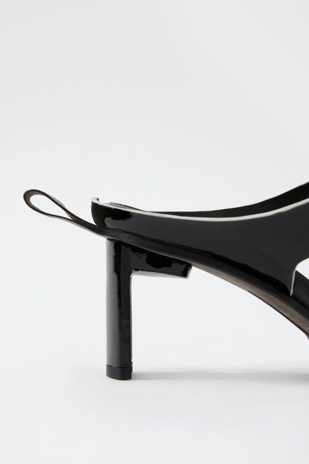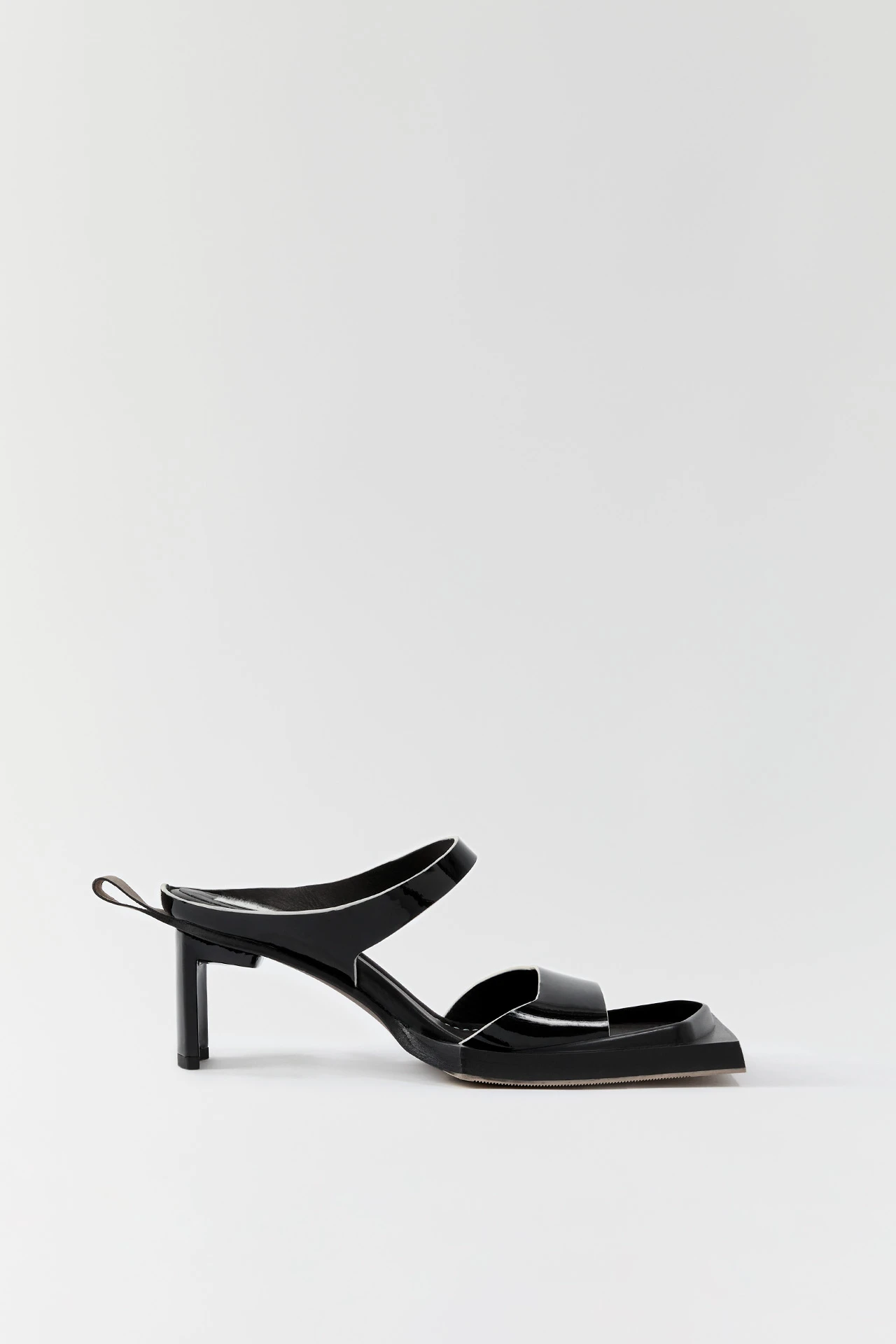 As sandals go, Ren is a strong one. Inspired by steel-capped workboots, her sharp-cornered rubber toe-caps extend far beyond the welt of the outsole for an assertive statement finish. The ultra-thin curved heel stands in opposition to this angularity, sitting just below her contrast rear loop, added for easy entry. Ren’s straps are formed from black patent leather with contrast white rubberised edging, and she has a vegetable tan cow leather insole – complete with a rubber toe and heel cap to protect her leather sole.