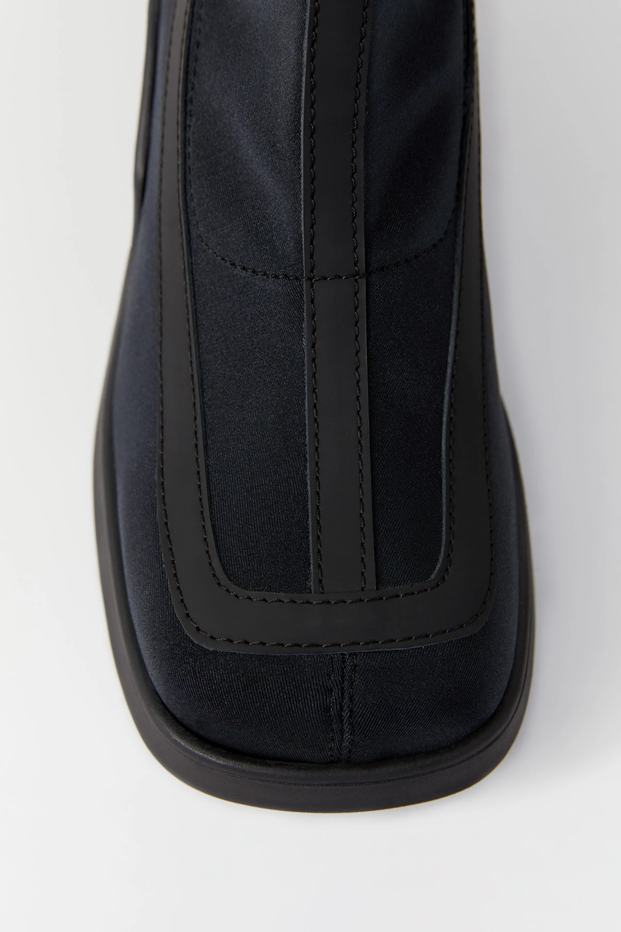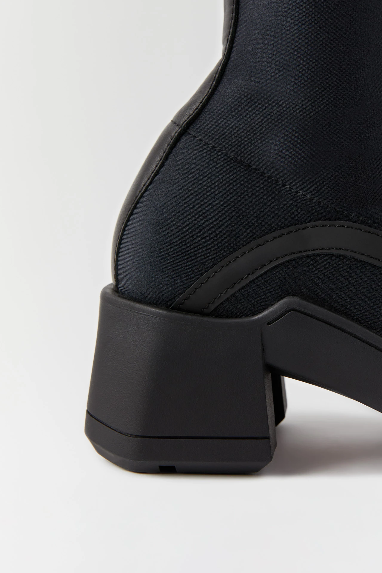 Shawna is a stretch lycra slip-on boot inspired by 1970s motor-racing boots that features two slim stripe panels of reflective grey textile (see them shine under flashlight!). Stride with speed in these sporty chunky soles that boast cubic chiselled sections and an E8 logo tread sole.