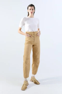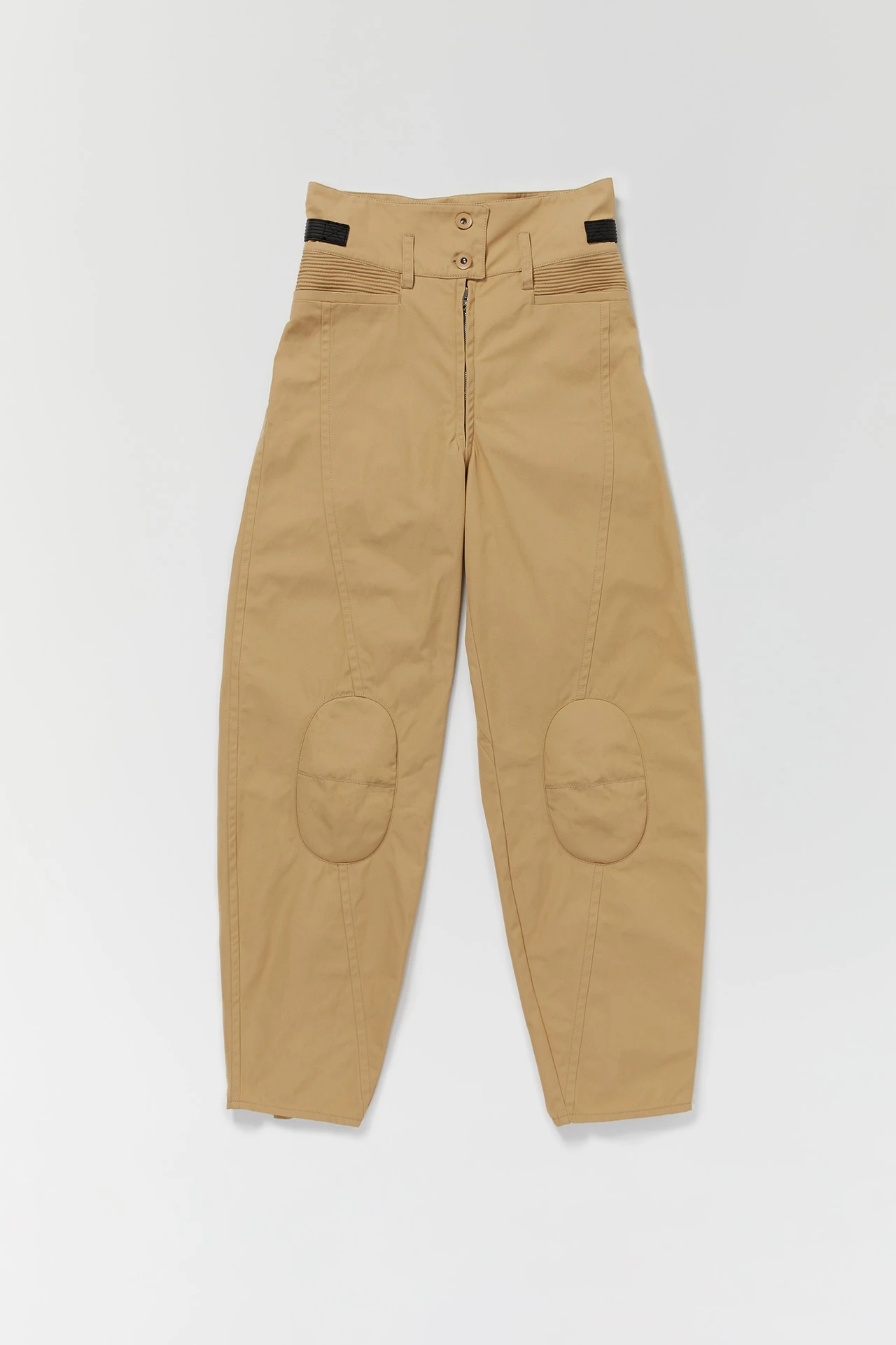 Inspired by japanese bikers, Shuji takes an elegant tailored trouser and adds all the biker details: zippers at the back of the ankle, knee pad panels, striped panels at the pockets, rubber waist tabs, button closure and long zip.