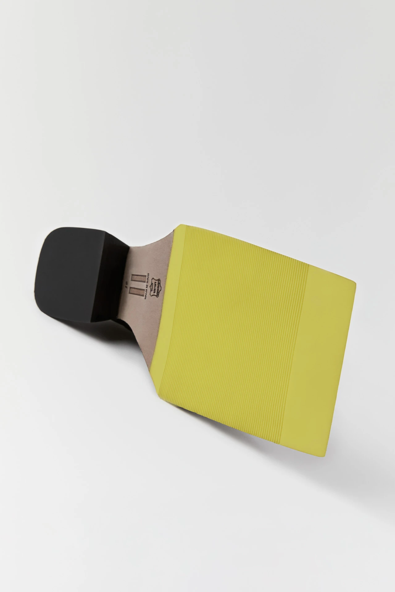 Step into our Space boots and you’ll feel out of this world. This chelsea boot is handcrafted from distressed leather that reveals a yellow undertone after hand-brushing by our artisans in Spain, complemented by soft taupe elastic panelling and raw edges. Featuring a stacked leather heel and our oversized angular rubberised sole that extends around the toe.