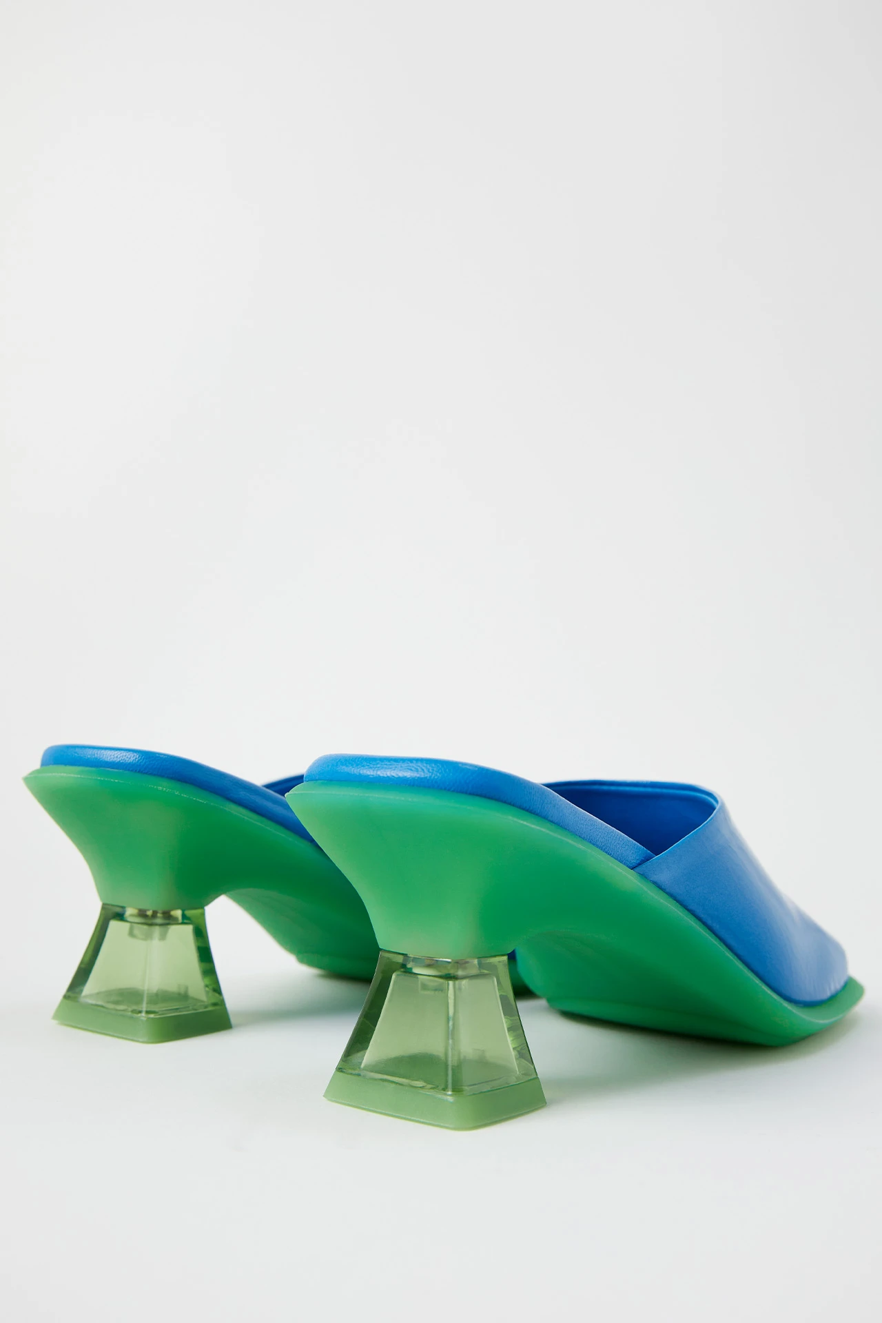 She’s Synthia and she’s queen of the summer. She’s got a leather upper with a swooping curve that hugs the front of the foot then meets the toes with a clean straight line. Like all Icons, Synthia’s got a calf leather memory foam sole, sitting comfortably atop her contrast rubber sole. But the real kicker’s her square pyramid perspex heel – just like a fishtank without the fish.