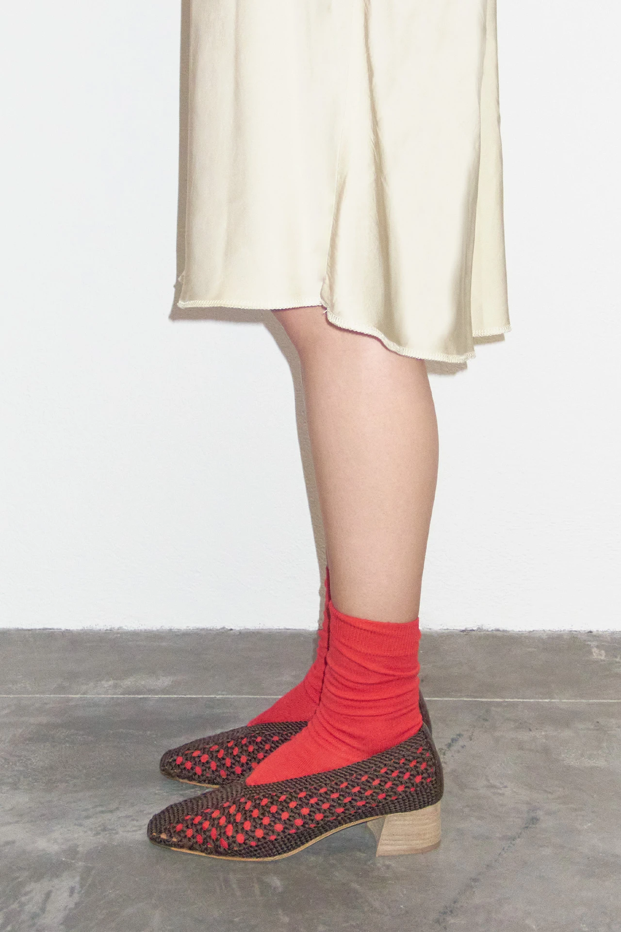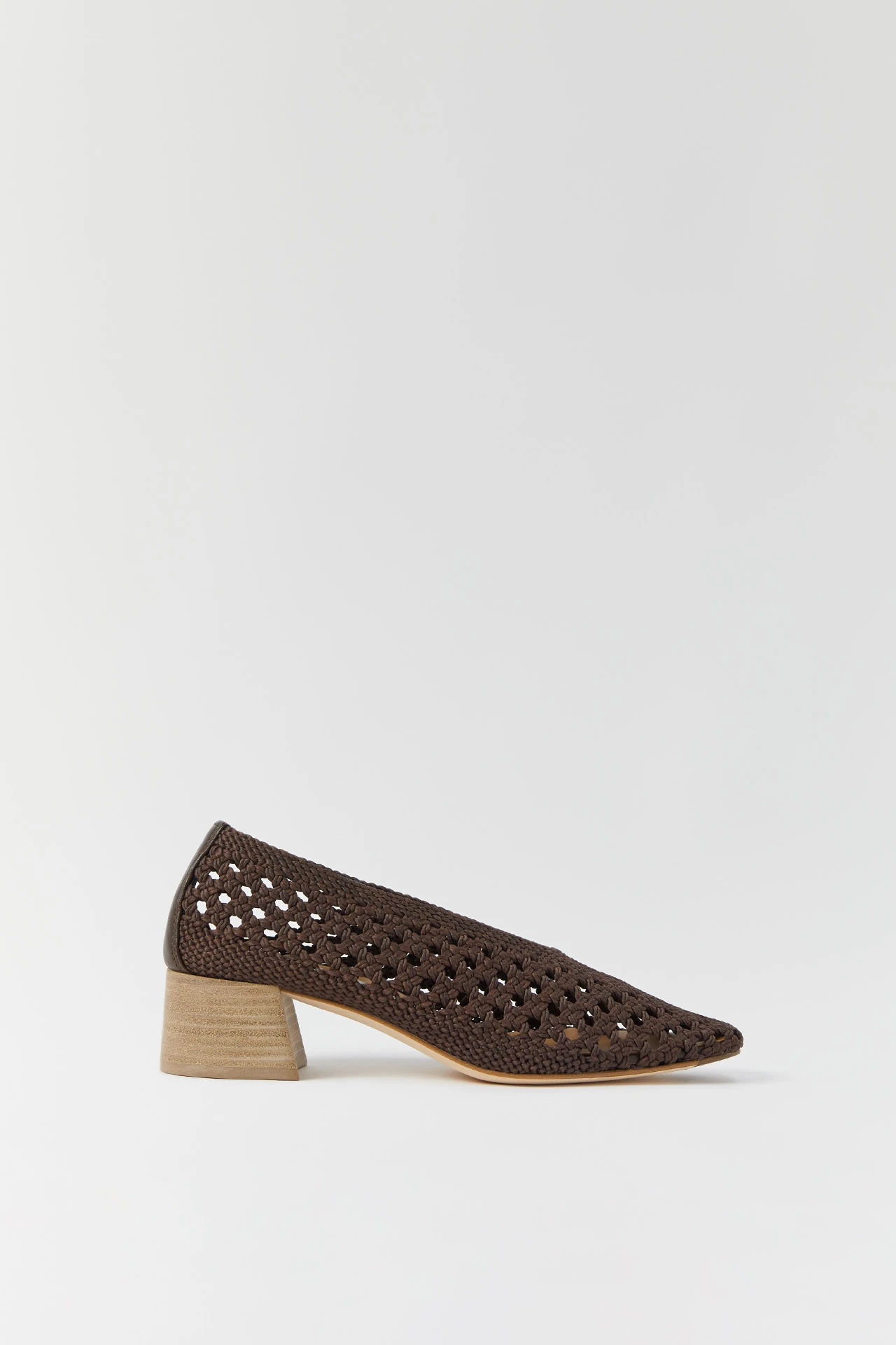 Taissa’s timeless, and she’s back with a bang. Her handwoven cotton mix macrame upper forms a plunging soft v-shape to the cuff, echoed in the parrallel lines of her elegantly elongated square toe. She’s got a memory foam calf leather insole that sits atop her mid-height stacked leather heel and leather outsole – complete with a rubber heel cap and rubber invected toe for durability.