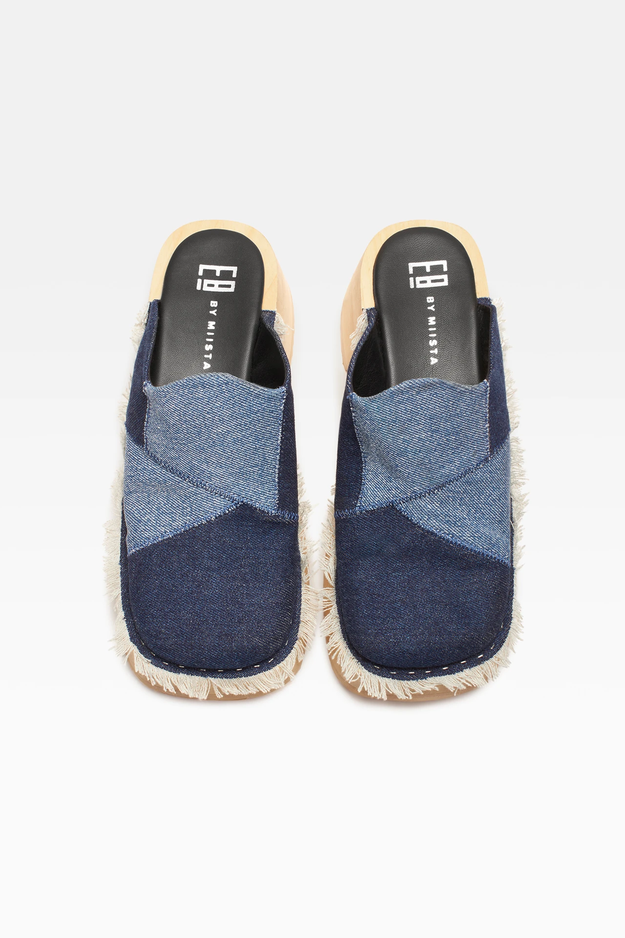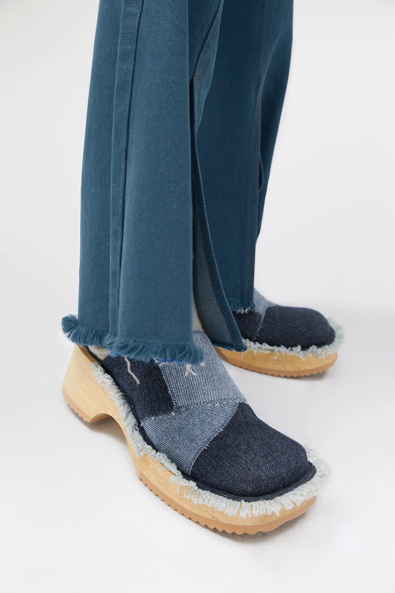 Denim and clogs are spring’s best friends, so we paired a patchwork denim upper with our sculptural natural wooden wedge. Finished with overlock stitching, frayed edges and a zig-zag rubber sole. Pair them with even more denim, because you can never overdo it. Finished with ultra-cushioned memory foam insoles, leather lining, wooden soles and rubber outsole. Heel height 5cm. This style is true to size. We recommend selecting your standard European size.